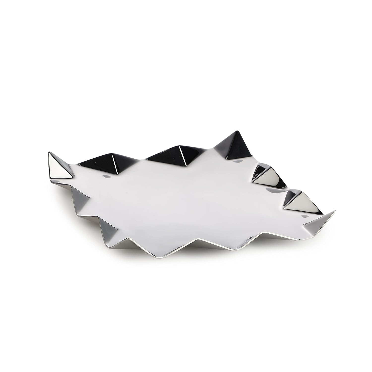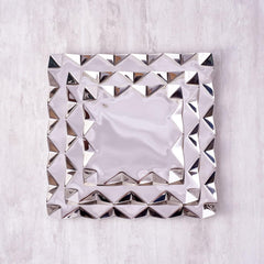 Designer Chrome Stainless Steel Square Platter, Small | Zig Zag Serving Tray For Food Dessert Fruit, Coffee & Tea | Criss Cross Series