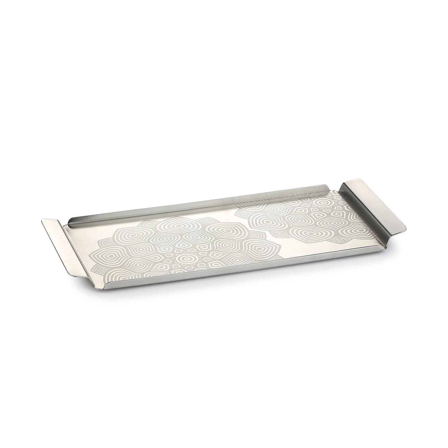 Designer Chrome Stainless Steel Tray, Small | Luxury Gift Collection | Lotus Pattern | Multipurpose Serving Platter | Premium Serve Ware, Dinnerware & Tableware | Padma Shvet Series