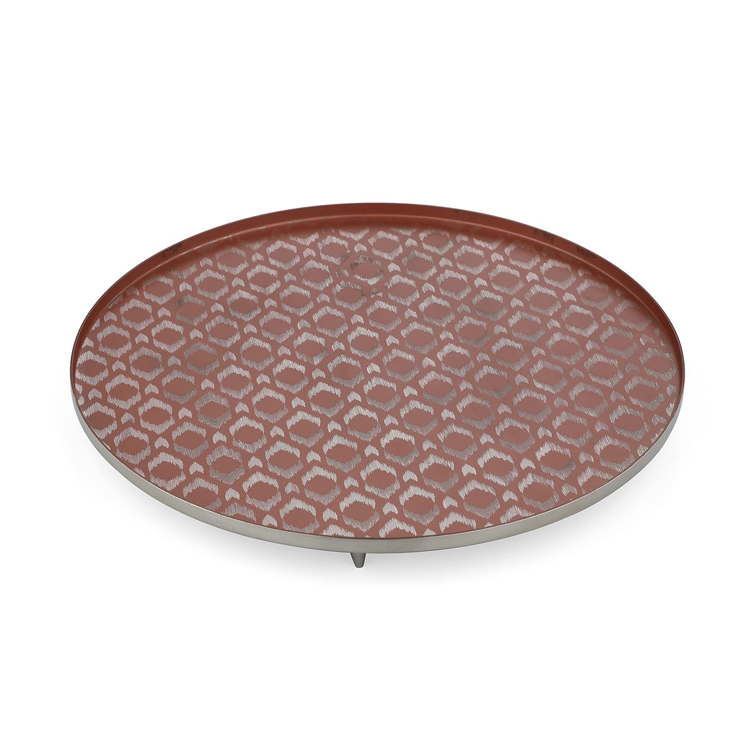 Designer Stainless Steel Round Platters With Legs | Serving Tray For Food Dessert Fruit Coffee Tea | Serve Ware, Dinnerware & Tableware | Engraved Pattern | Large, Pink | Ikat Series