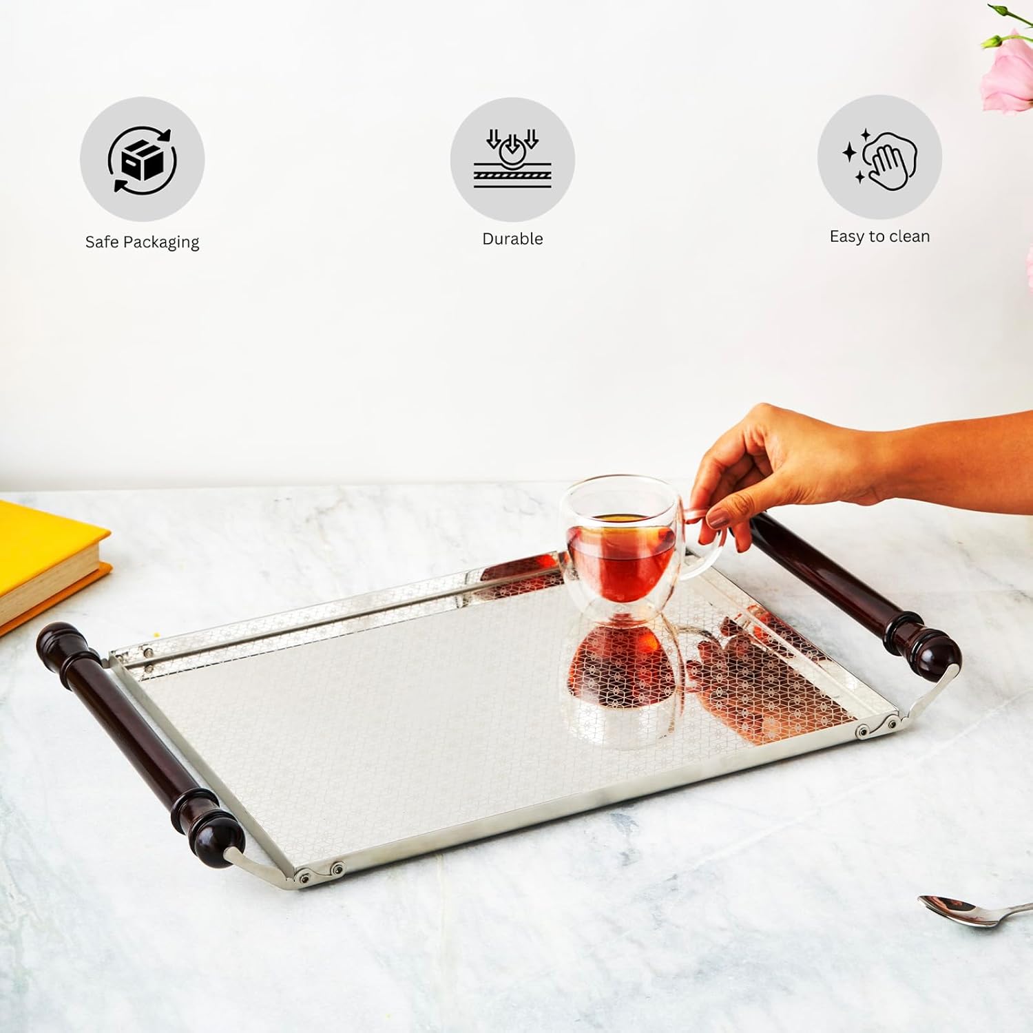 Crafted with Quality: With an elegant and simple design, this tray is a showcase of high-quality Stainless Steel. Its durable build and resistance to corrosion ensure long-lasting use, making it a practical addition to your serveware.