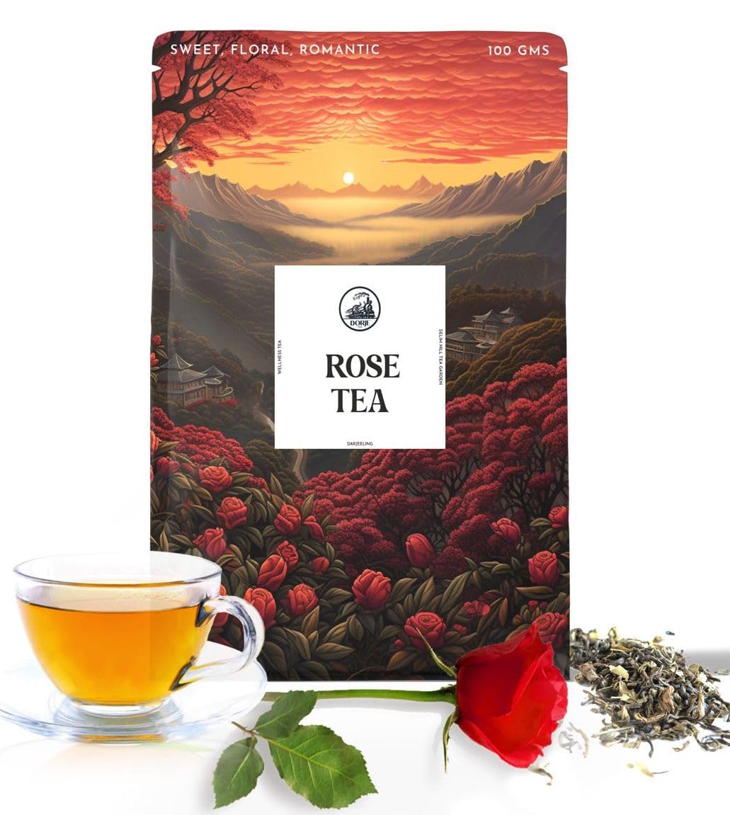 Dorje Teas Darjeeling Rose Tea - 100gm, 3.5 Ounce, 40 Cups | Promotes Good Sleep & Stress Relief - Low Caffeine, Soothing Tea For Relaxation & Glowing Skin