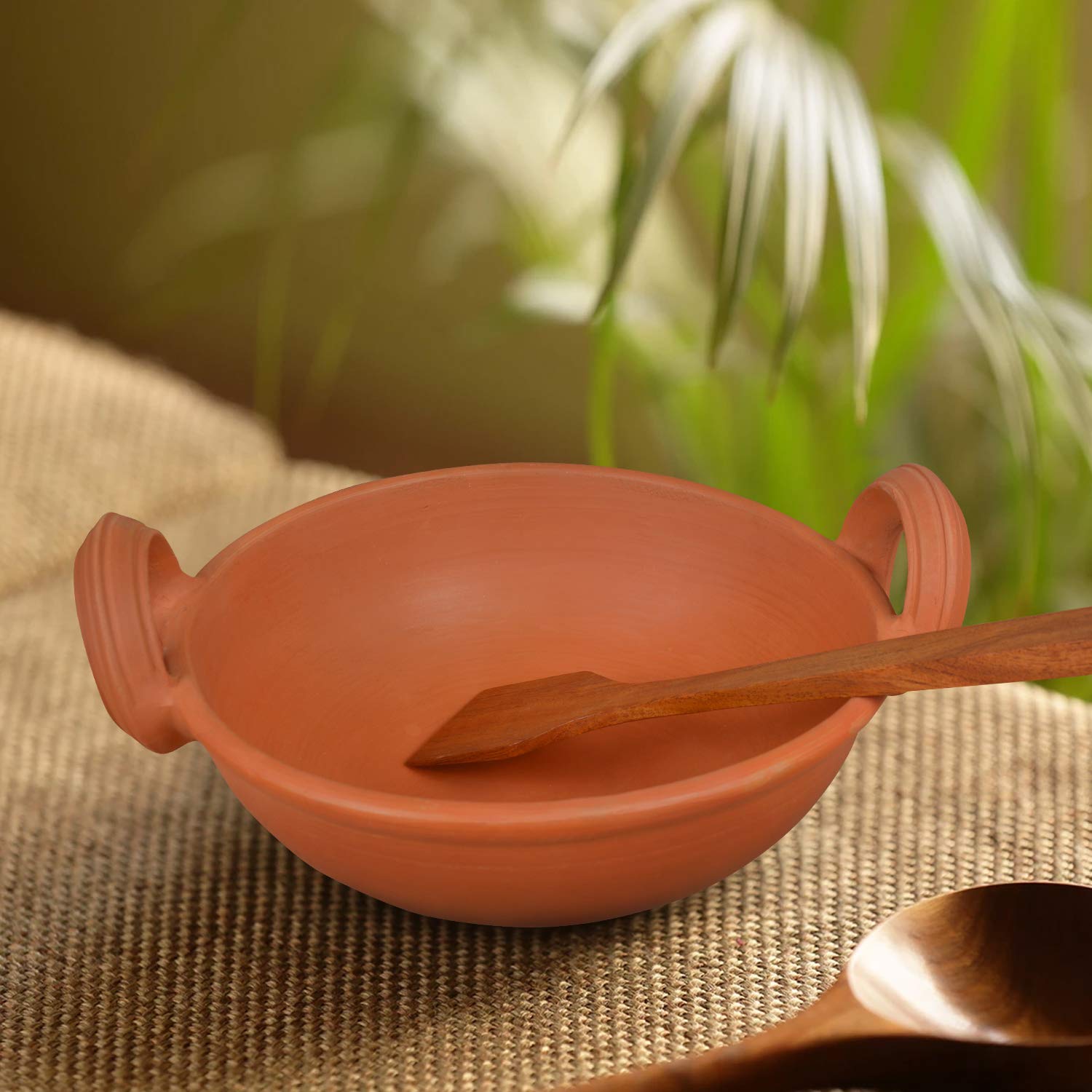 Earthenware Handcrafted Natural Clay Indian Wok - Brown Clay Kadhai 1.5 Liters