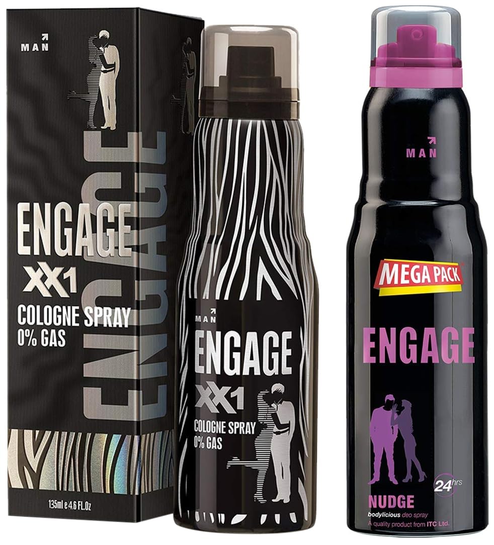 Engage nudge deo is a combination of classic fougere aromatic elements with fresh green aspects of spicy basil and anisic tonalities and citrus notes. Engage deodorants offer pairs of captivating, fresh, & irresistible fragrances for menĀ and women to encourage a new language of love, setting the mood for romance.Ā These long lasting fragrances enables the chemistry between you and your partner sizzle 24h.