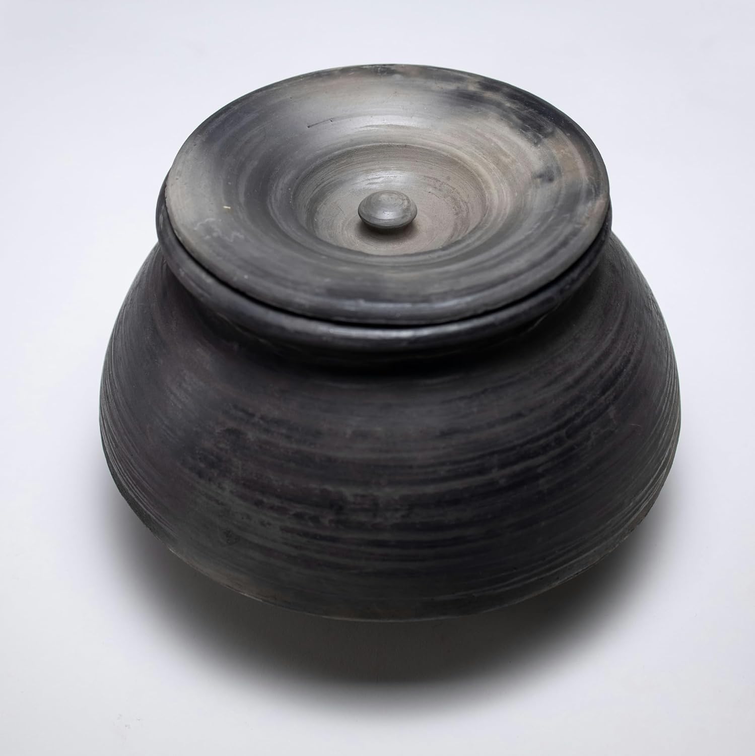 Ancient Firing Method & Mirror Finish: Earthen pots are given a mirror finish and shine by carefully rubbing them with a special quality stone. Additionally, the products are baked and fired using a TRADITIONAL method that uses wood and hay and higher firing temperaturesāroughly 1200C. This gives the pot extra strength and durability and gives it a black color.