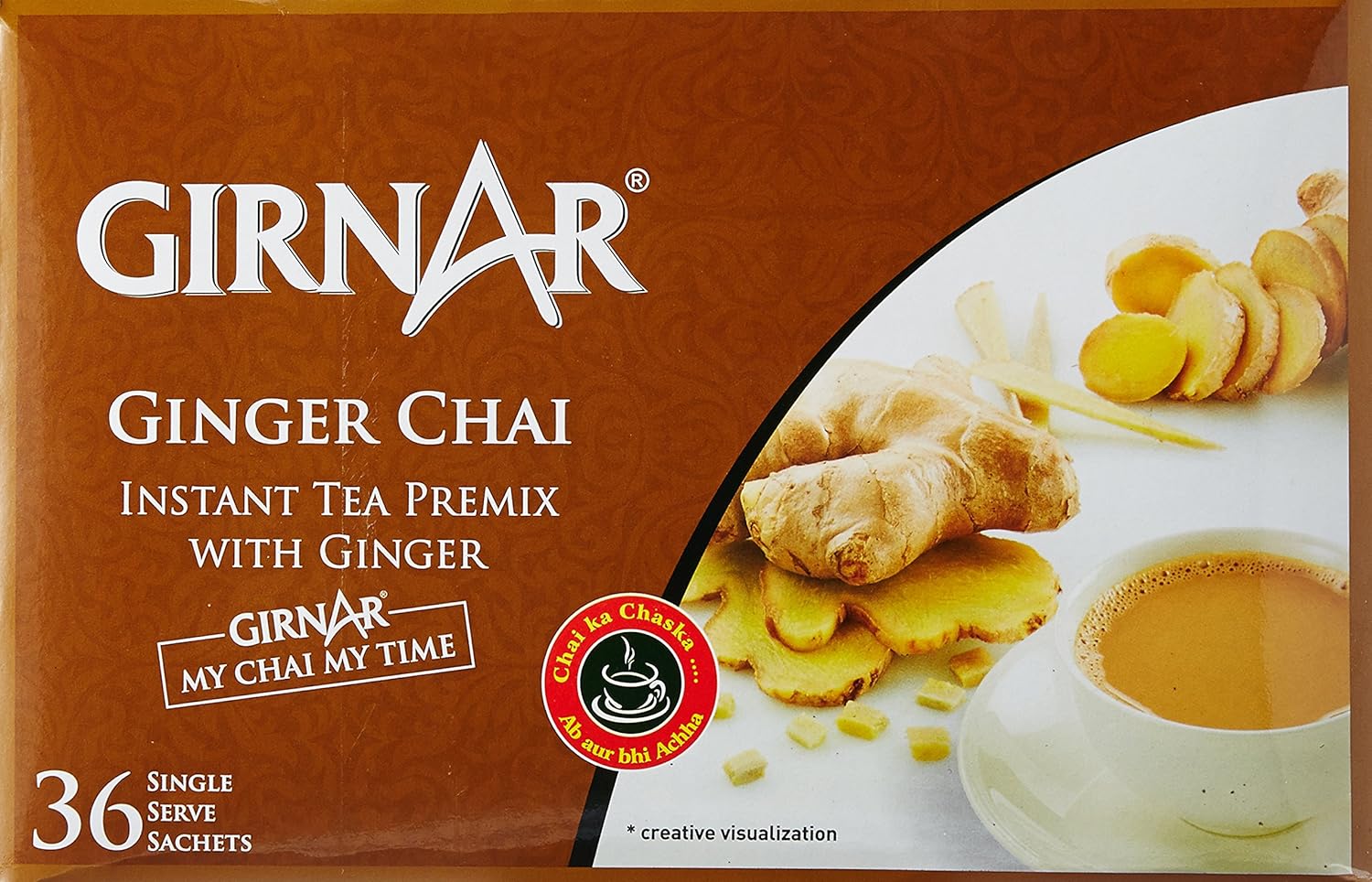 Girnar Ginger Chai Instant Tea Premix With Ginger - 36 Sachets | Natural Tea Extract & Kadak Adrak Chai - Caffeine Free Loose Leaf Tea