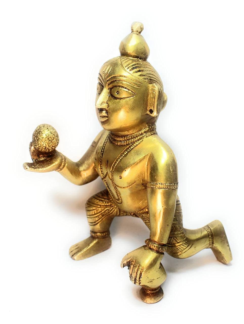 Gold Laddu Gopal Idol, Bal Gopal Murti, Baby Krishna Idol, Brass, Gold Statue, Lightweight, Eco Friendly, Washable, Antique Look, Festival Celebration, Thakur Ji Murti, God Idol