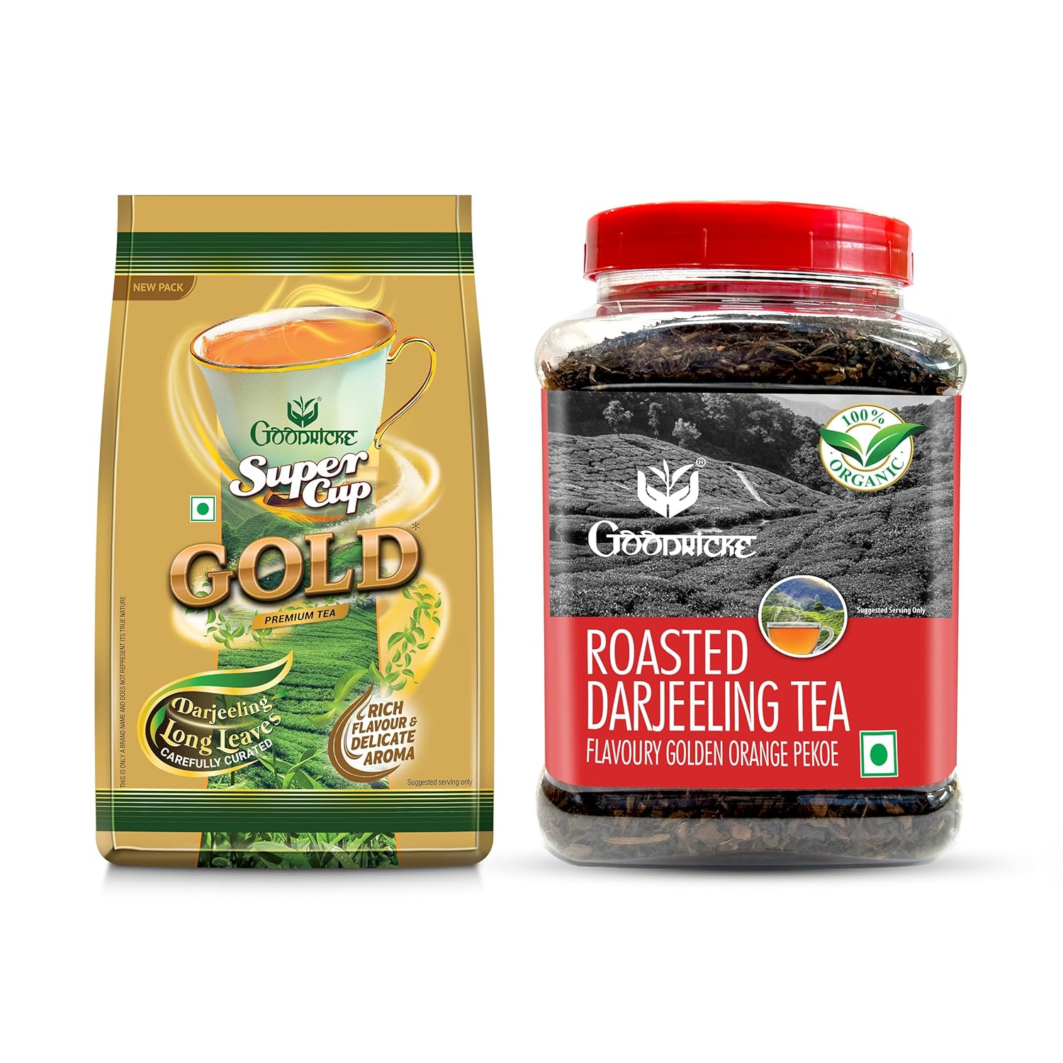 Goodricke Combo Pack Of 2 X 250gm, 8.8 Ounce Each - Roasted Darjeeling Tea & Super Cup Gold Tea | 100% Pure & Original Single Estate Whole Leaf Tea - Low Caffeine Loose Leaves