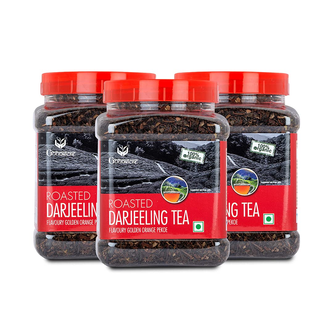 Goodricke Roasted Darjeeling Tea Pack Of 3 X 250gm Jar, 8.8 Ounce Each - Flavoury Golden Orange Pekoe | Premium Black Loose Leaves Tea With Rich Taste & Flavor - Low Caffeine