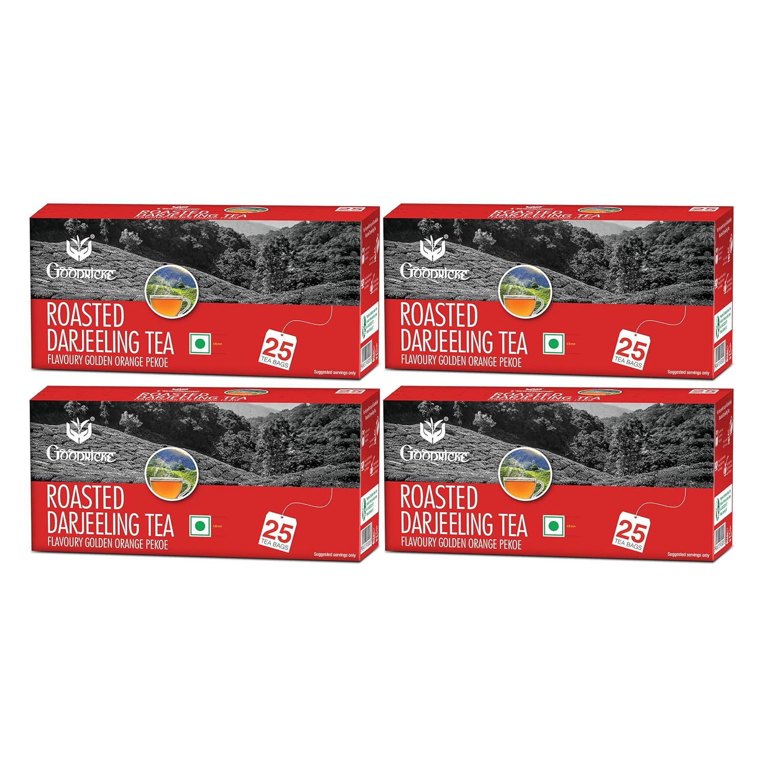 Goodricke Roasted Darjeeling Tea - Pack Of 4 X 25 Tea Bags | Flavoury Golden Orange Pekoe - Premium Black Tea With Rich Taste & Flavor | 100% Pure & Original Long Leaf Chai - Low Caffeine