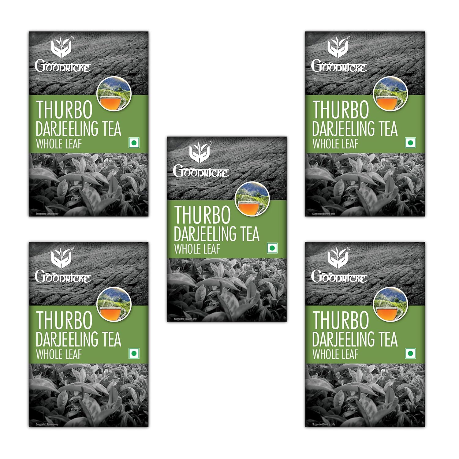 Goodricke Thurbo Darjeeling Whole Leaf Tea - Pack Of 5 X 100gm, 3.5 Ounce Each | Premium Black Long Loose Tea Leaves With Rich Taste - 100% Pure & Original Single Estate Chai Patti | Low Caffeine