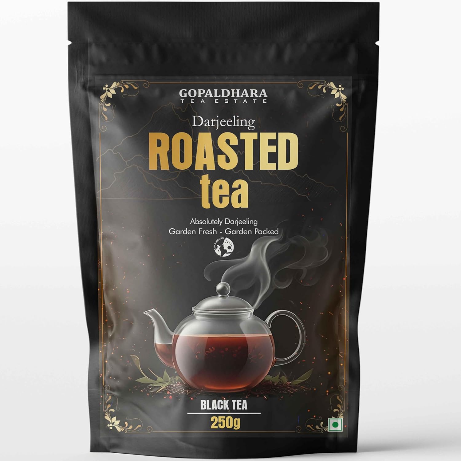 Gopaldhara Darjeeling Roasted Black Tea - 250gm Stand Up Zipper Pouch, 8.8 Ounce | Flavory Golden Orange Pekoe Black Tea - Rich Taste & Flavor | Low Caffeine, Gluten Free