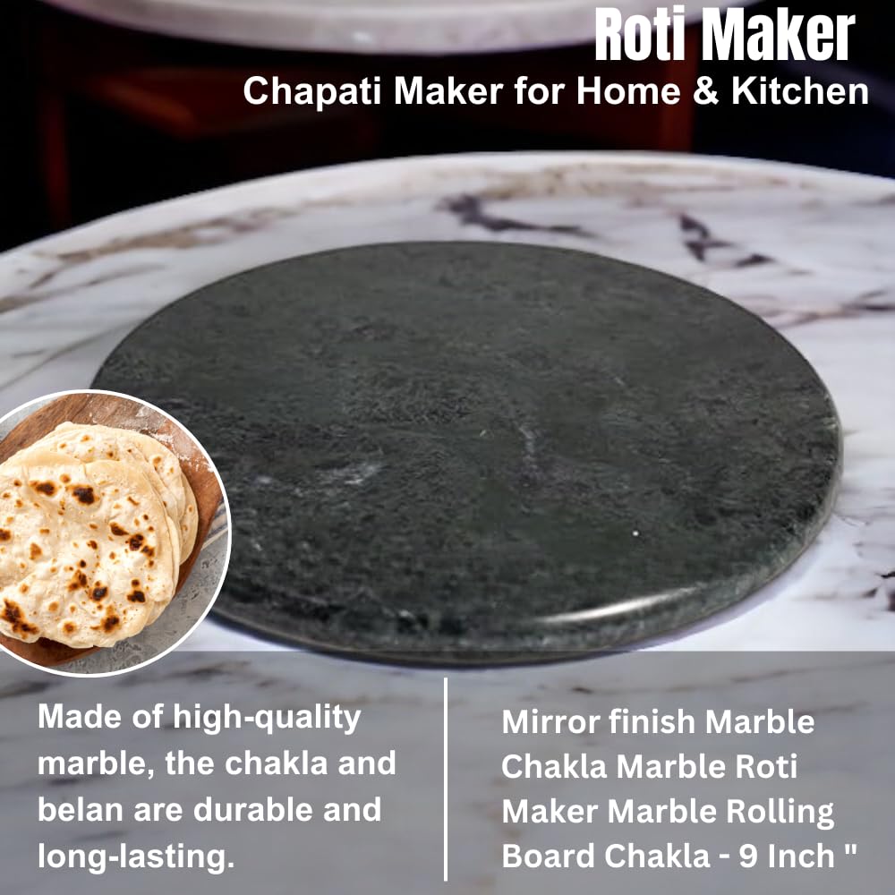 Green Marble Chakla 9 Inch | Rolling Pin Board | Roti Maker | Phulka Maker | Chapati Maker For Home & Kitchen | Full Finished Marble Roti Maker Kitchen Utensil