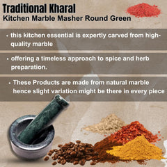 Green Marble Khal Batta | Mortar & Pastel | Traditional Kharal Grinder | Imam Okhli Musal | Kitchen Marble Masher Round (4X2.5 Inch)