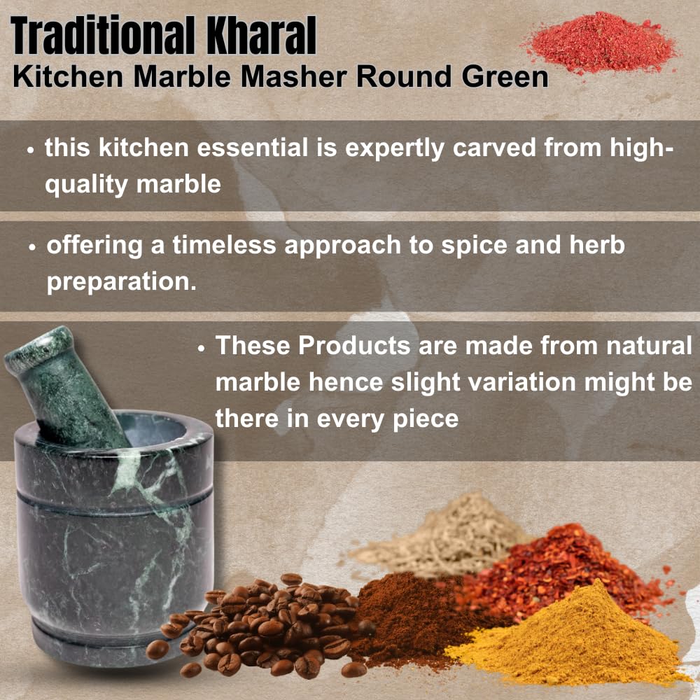 Green Marble Khal Batta | Mortar & Pastel | Traditional Kharal Grinder | Imam Okhli Musal | Kitchen Marble Masher Round (4X4 Inch)