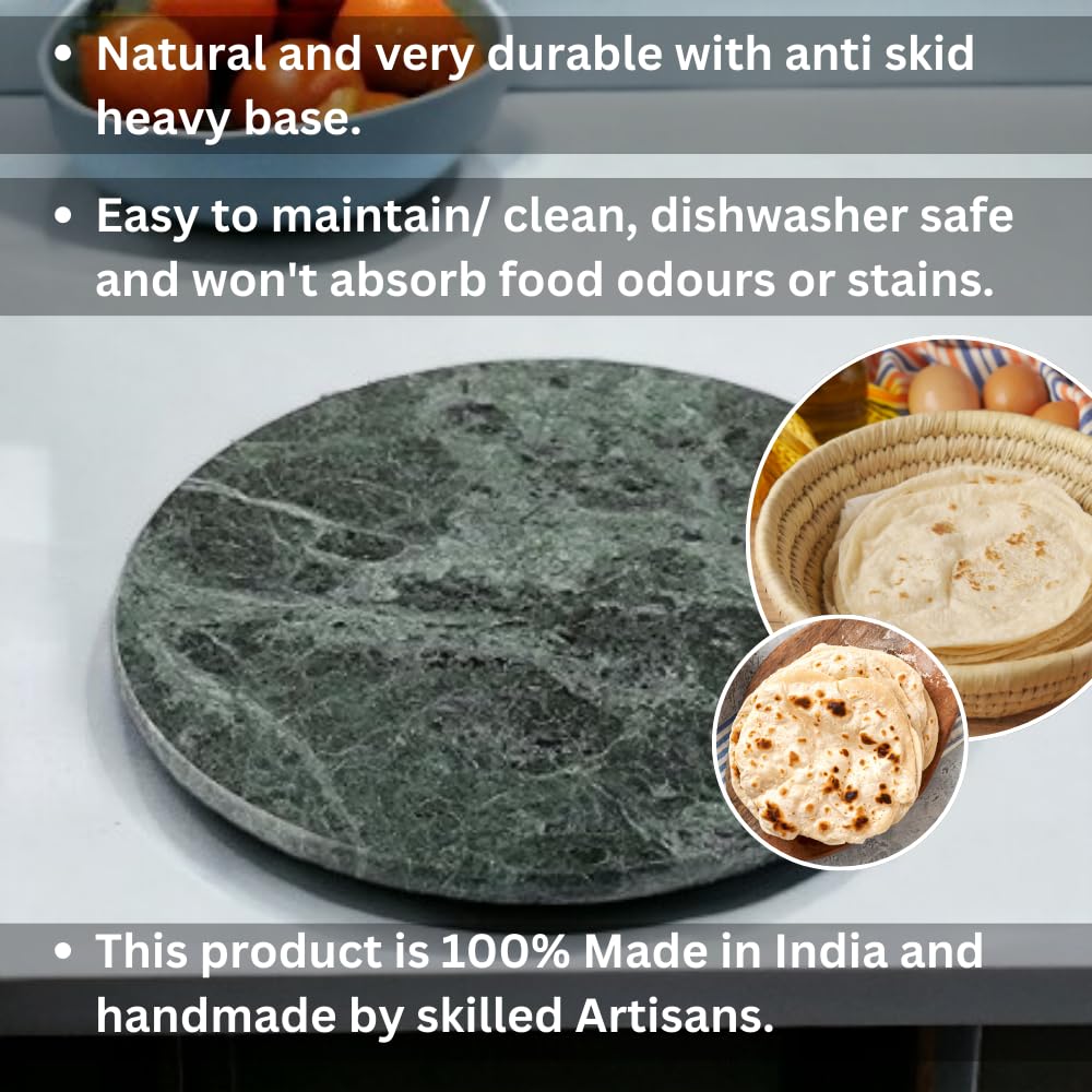 Green + White Marble Chakla 9 Inch | Rolling Pin Board | Roti Maker | Phulka Maker | Chapati Maker For Home & Kitchen | Full Finished Marble Roti Maker Kitchen Utensil