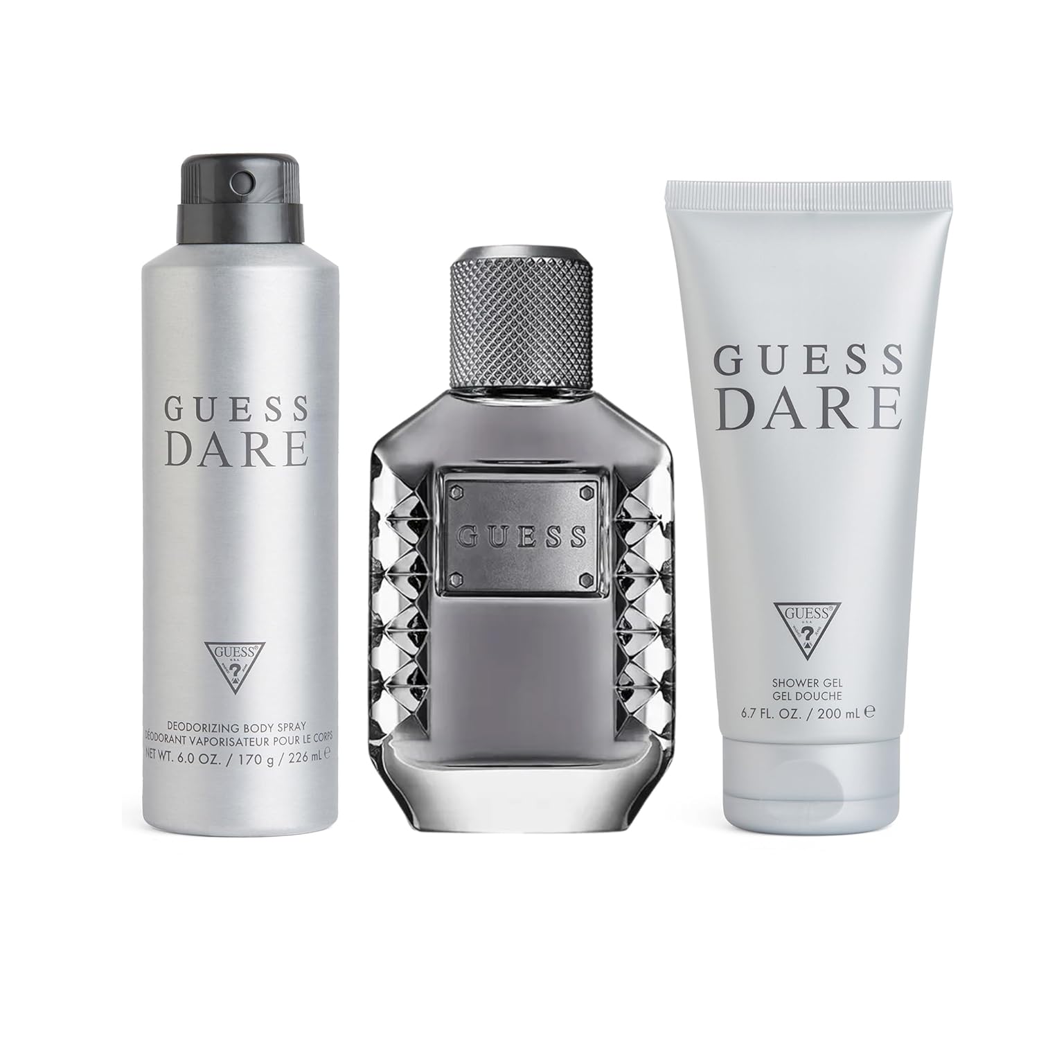 Give him a gift he'll love with guess Dare, the masculine fragrance for Men. Notes of bergamot, geranium and musk blend to create an unfortgettable aroma where attraction and adventure collide.