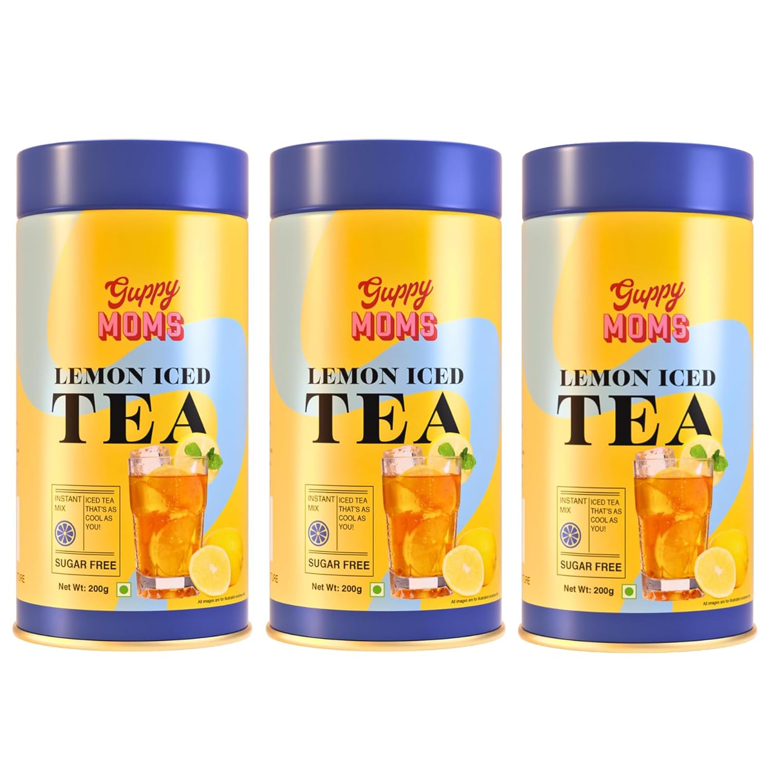 Guppy Moms Lemon Iced Tea Powder - Pack Of 3 X 200gm, 7.05 Ounce Each | Aromatic, Healthy & Easy To Prepare - Sugar Free & Refreshing Summer Drink | Caffeine Free