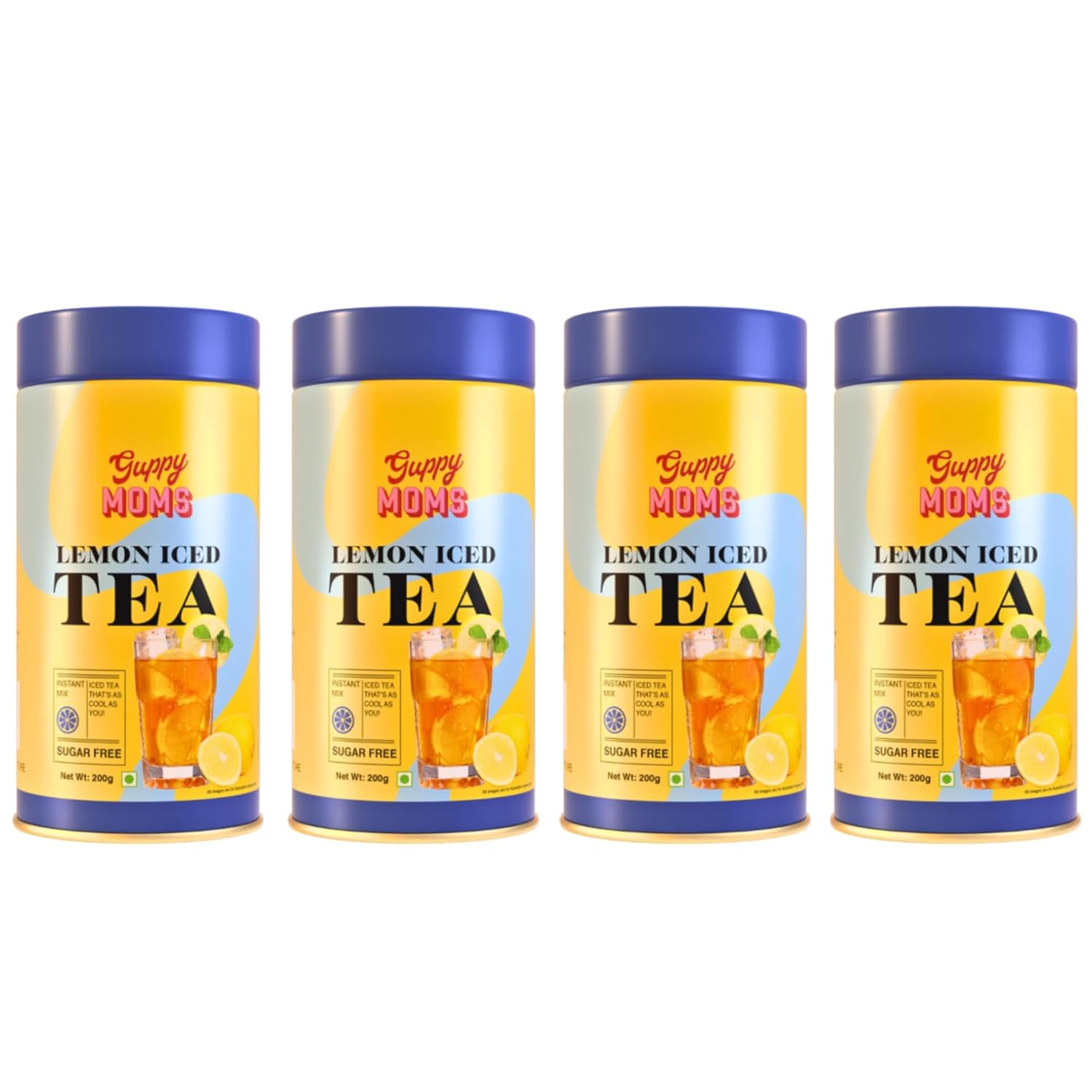 Guppy Moms Lemon Iced Tea Powder - Pack Of 4 X 200gm, 7.05 Ounce Each | Aromatic, Healthy & Easy To Prepare - Sugar Free & Refreshing Summer Drink | Caffeine Free