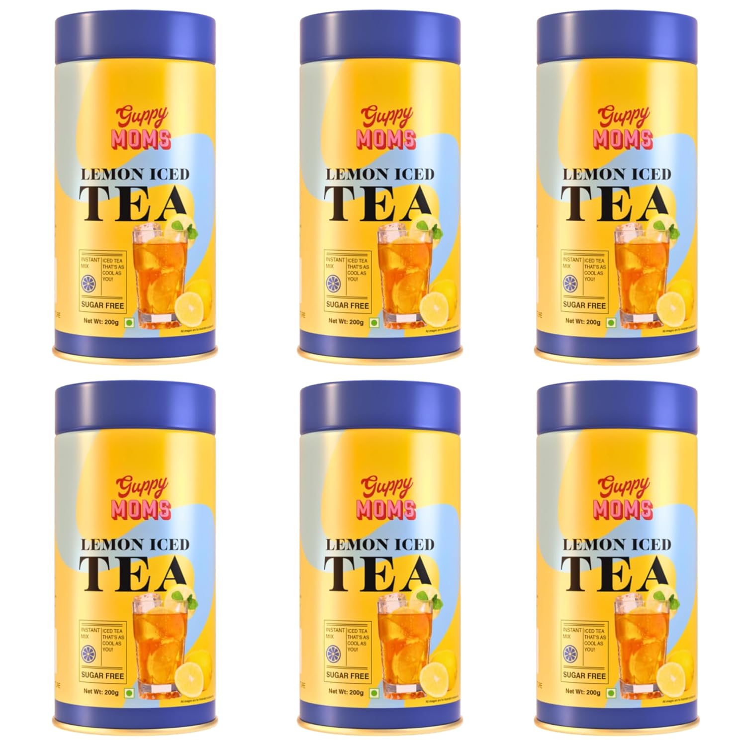 Guppy Moms Lemon Iced Tea Powder - Pack Of 6 X 200gm, 7.05 Ounce Each | Aromatic, Healthy & Easy To Prepare - Sugar Free & Refreshing Summer Drink | Caffeine Free