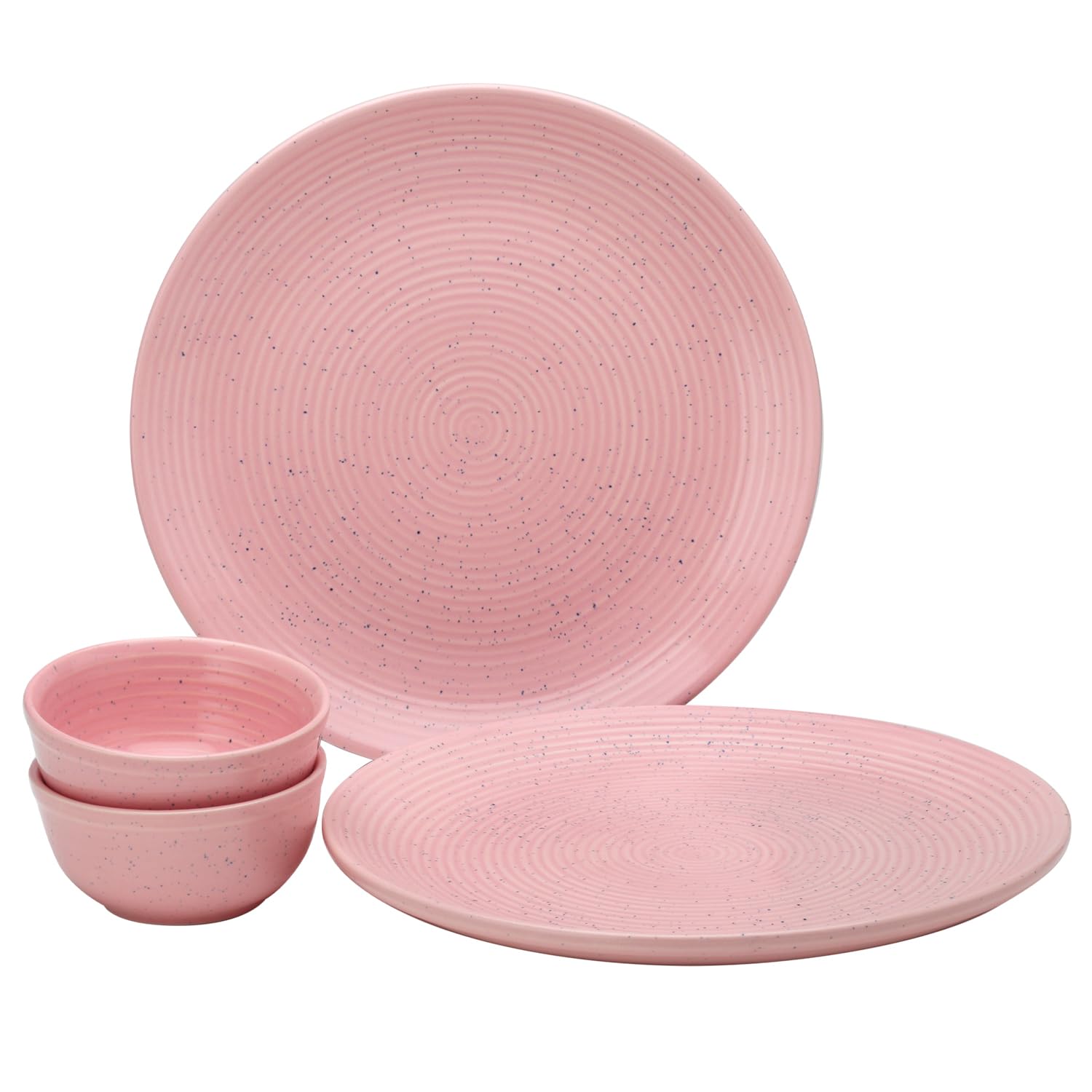 Hand Glazed Ceramic Stoneware Dinner Set - Pack Of 4, Pastel Pink | 2 Dinner Plates + 2 Small Dinner Bowl, 180ml Each | Scratch Resistant, Microwave & Dishwasher Safe