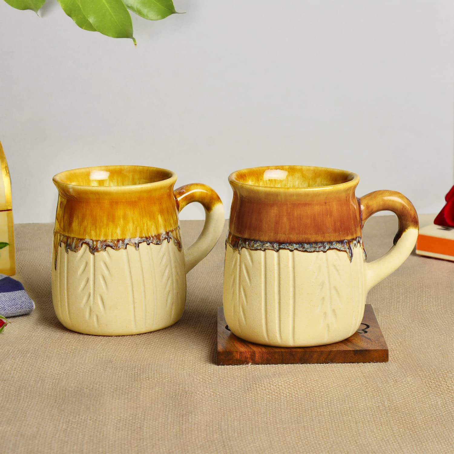 Hand Painted Ceramic Coffee Mugs Set Of 2 - Beige & Brown, 300ml Each | Milk Mugs | Chai Cups | Tea Cups & Mugs