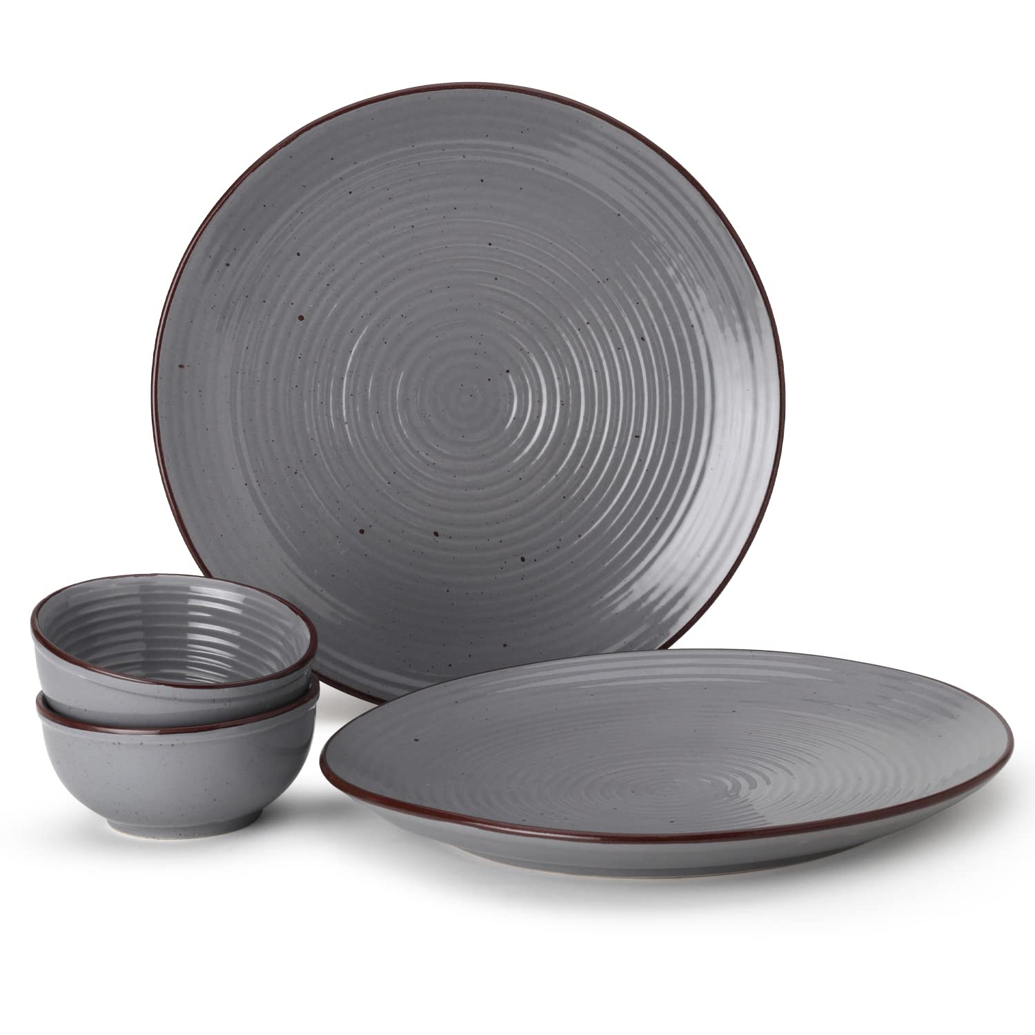 Hand Painted Ceramic Dinner Set - Pack Of 4, Grey | 2 Dinner Plates + 2 Dinner Katori, 180ml Each | Scratch Resistant, Microwave & Dishwasher Safe