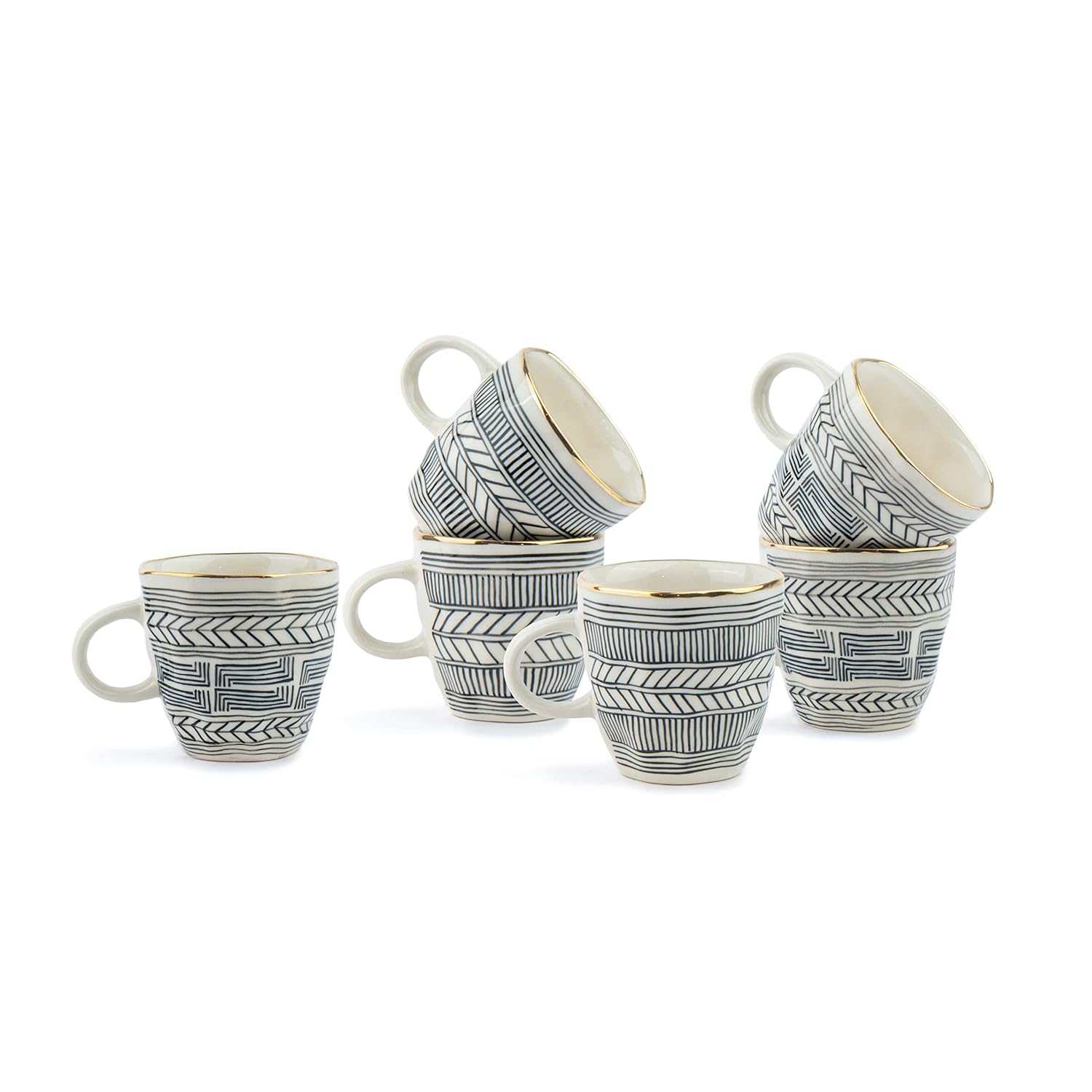 Hand Painted Ceramic Organic Coffee Cup Set Of 6 - 250ml Each, Off White | Medium Cup With Glossy Finish | Stoneware Coffee Cup Set | Ceramic Organic Cup | Microwave Safe & Dishwasher Safe