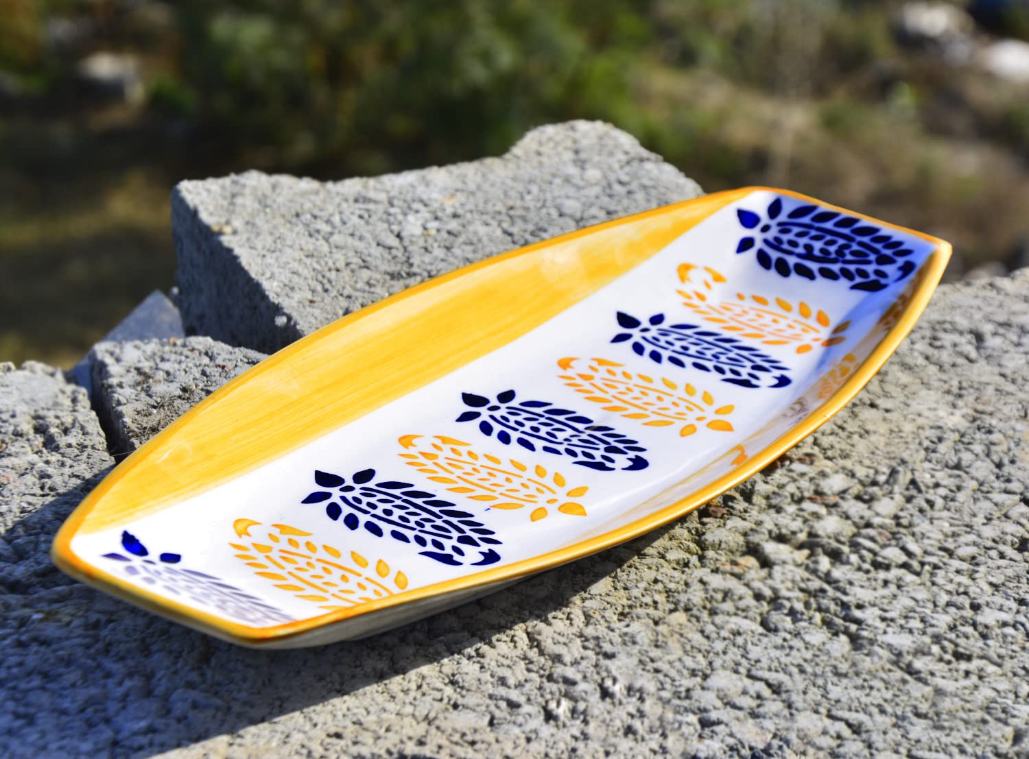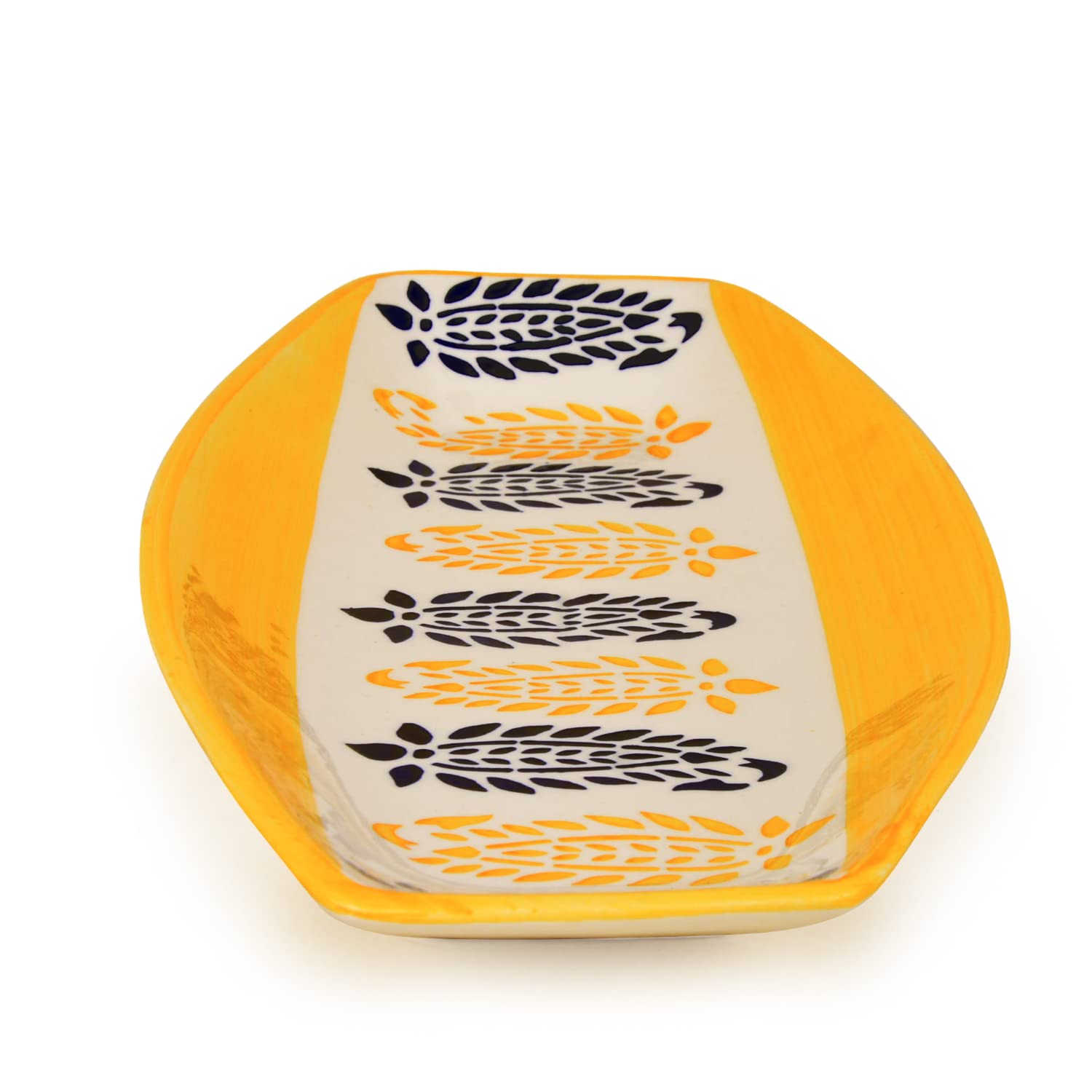 Hand Painted Ceramic Serving Platter - Orange & Black, L X B – 38 Cm X 16 Cm | Starter Serving Platter | Kebab Platter