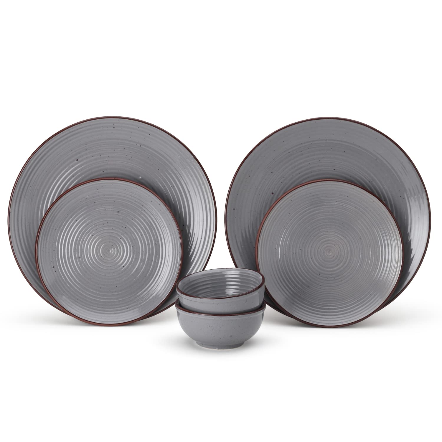 Hand Painted Ceramic Stoneware Dinner Set Of 6, Grey | 2 Dinner Plates, 10 Inch Each+ 2 Small Plates, 7 Inch Each + 2 Small Dinner Bowls, 180ml Each | Microwave & Dishwasher Safe