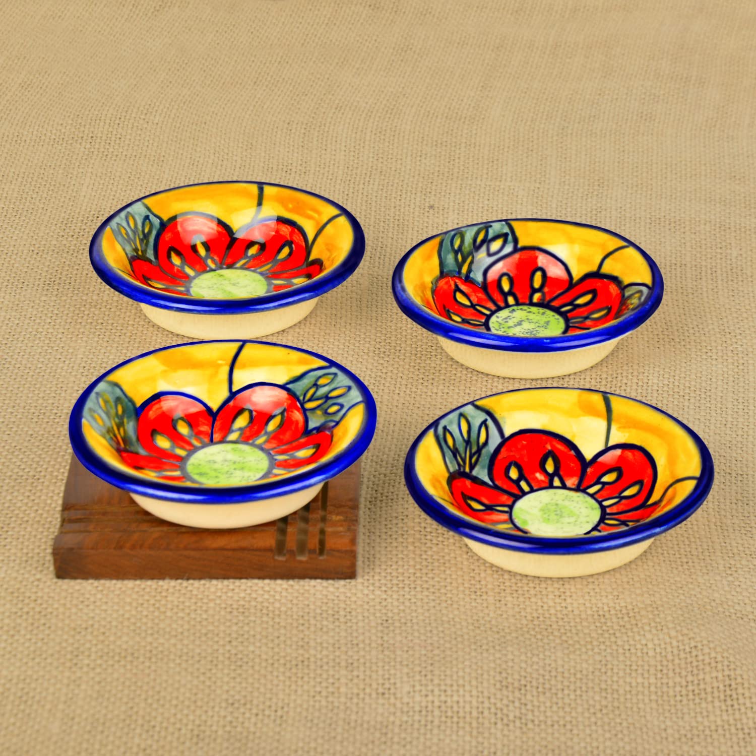 Hand Painted Floral Round Ceramic Dip Bowls Set Of 4 - Multicolor | Chutney Bowls | Ketchup Bowls