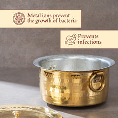 Handcrafted Brass Patila For Cooking 3 Litres | 100% Pure Brass Round Heavy Bottom | Hammered, Polished Tapeli - Patila - Bhagona | Golden Brass Handi