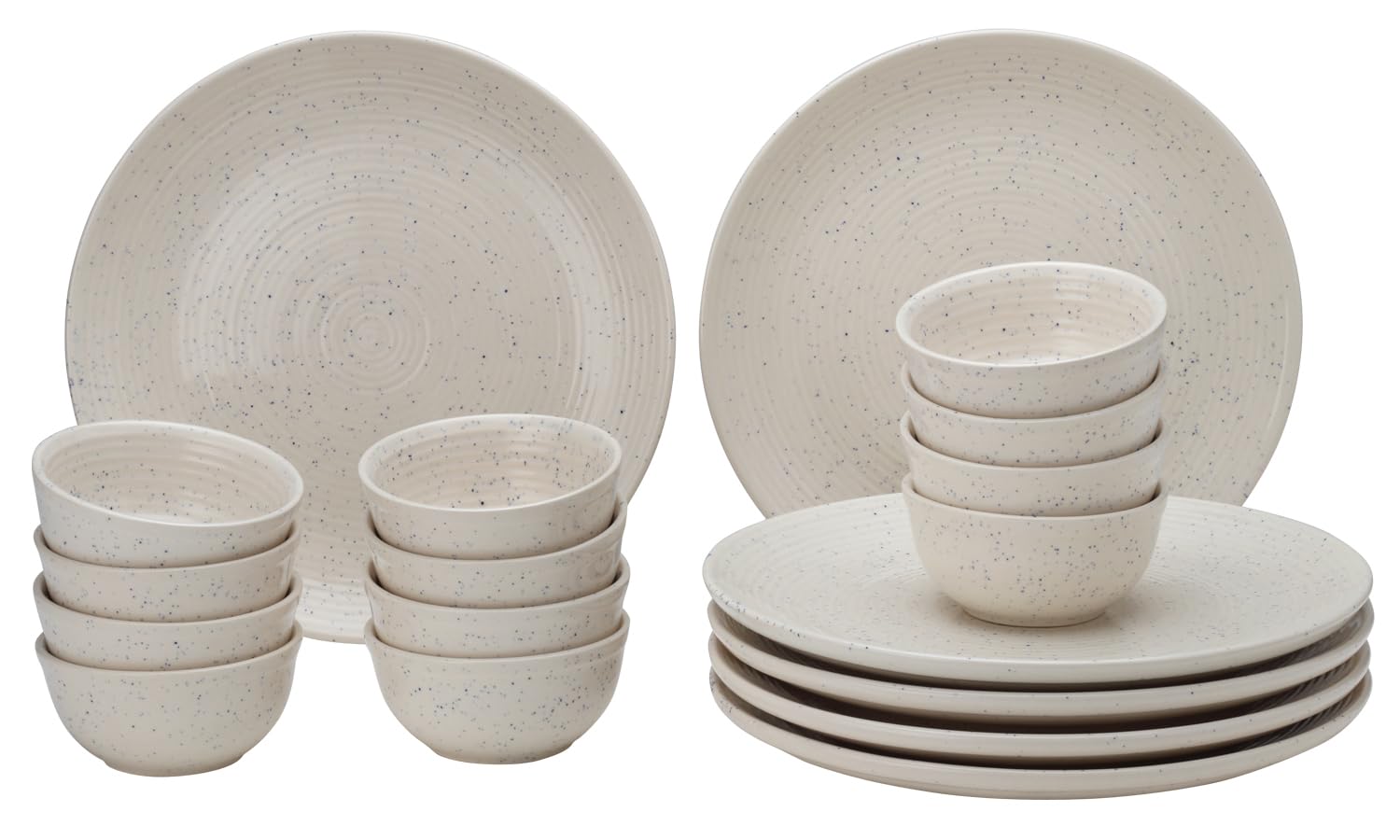 WHAT'S IN THE BOX: 18 pieces set includes 6 pieces of 10.6 Inch dinner plate and 12 pieces of 180 Ml and 4.3 Inch soup/cereal/Salad bowl.