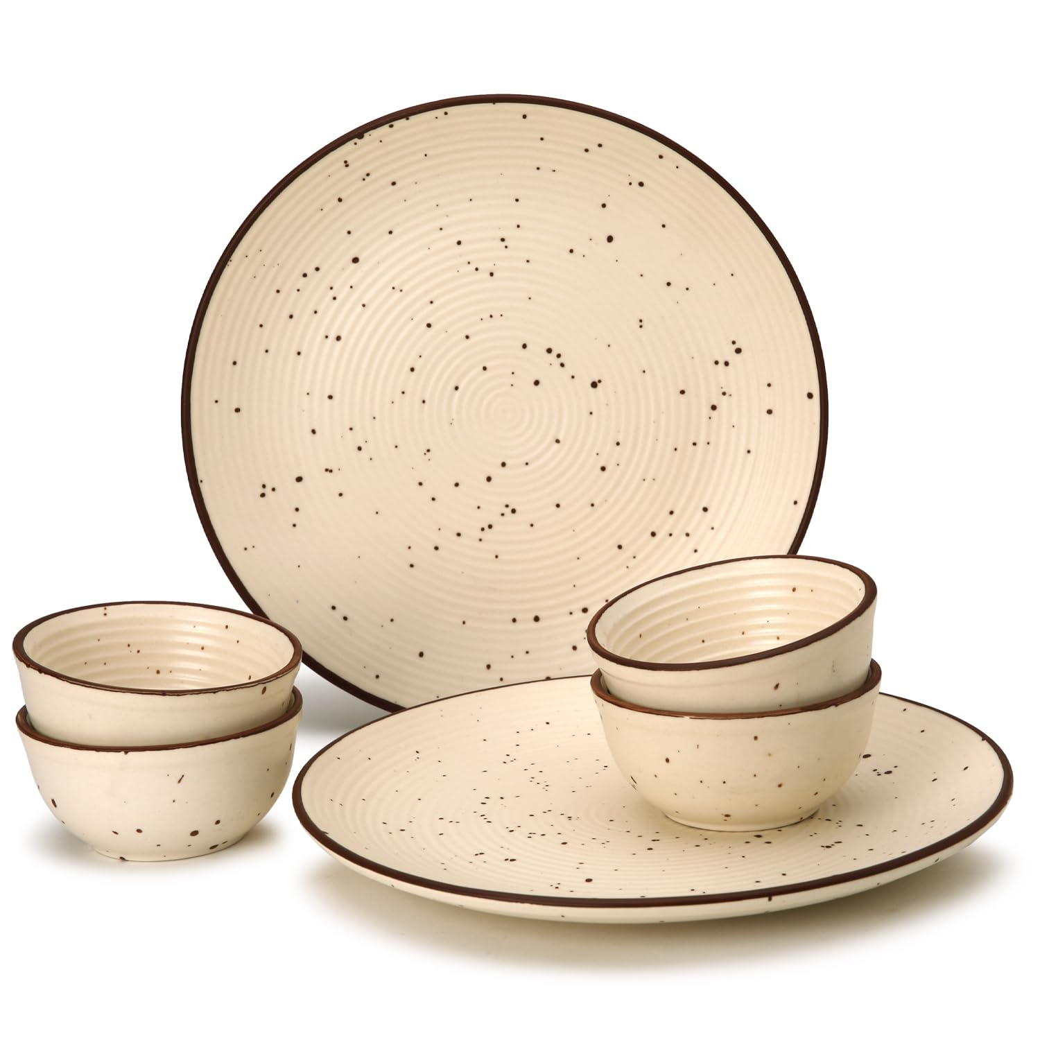 Handcrafted Ceramic Stoneware Dinner Set - Pack Of 6 Pcs, Beige | 2 Dinner Plates, 10.6 Inch Each + 4 Small Dinner Bowl, 180ml Each | Microwave & Dishwasher Safe
