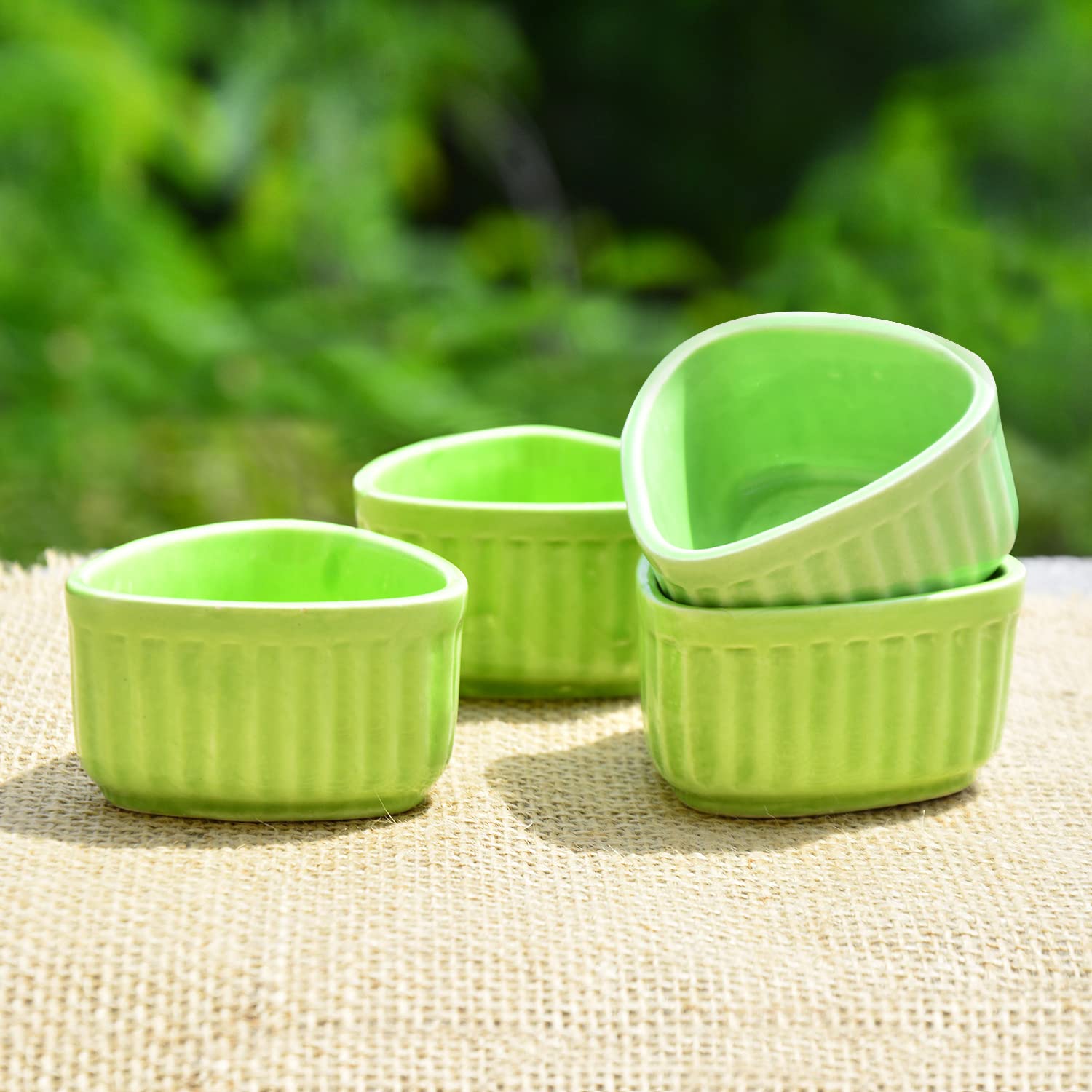 Handcrafted Ceramic Triangular Ribbed Dip Bowls Set Of 4 - Green, 50ml Each | Chutney Bowls | Ketchup Bowls