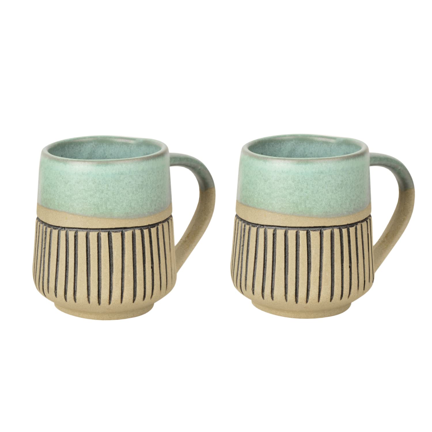 Handcrafted Dual Finish Ceramic Striped Coffee Mugs Set Of 2 - 325ml Each, Turquoise | Milk Mugs | Tea Cups & Mugs