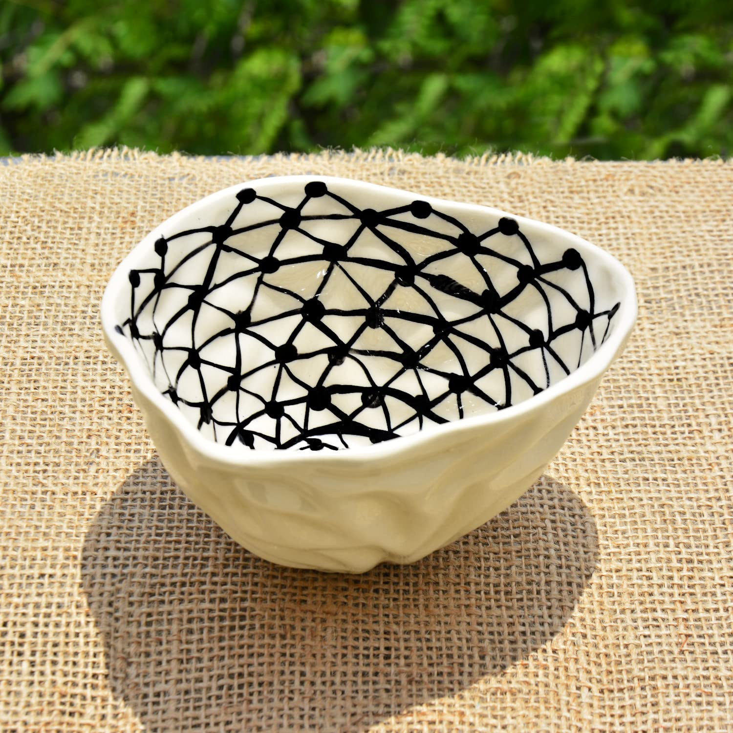 Handcrafted Organic Shape Ceramic Nut Bowl - Black & White, 6 Inches, 400ml | Snack Bowl | Maggie Bowl | Salad Bowl