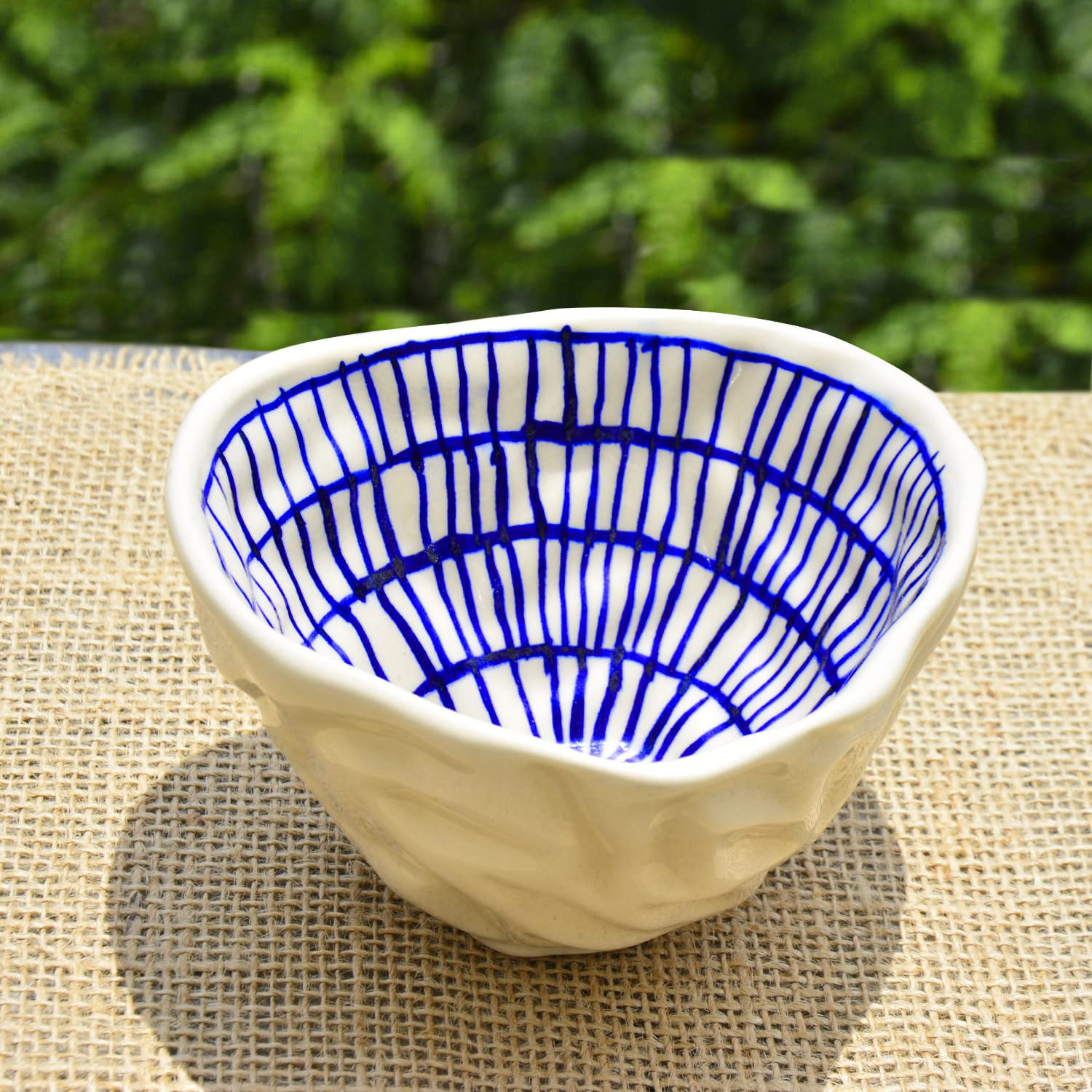 Handcrafted Organic Shape Ceramic Nut Bowl - Blue & White, 6 Inches, 400ml | Snack Bowl | Maggie Bowl | Salad Bowl