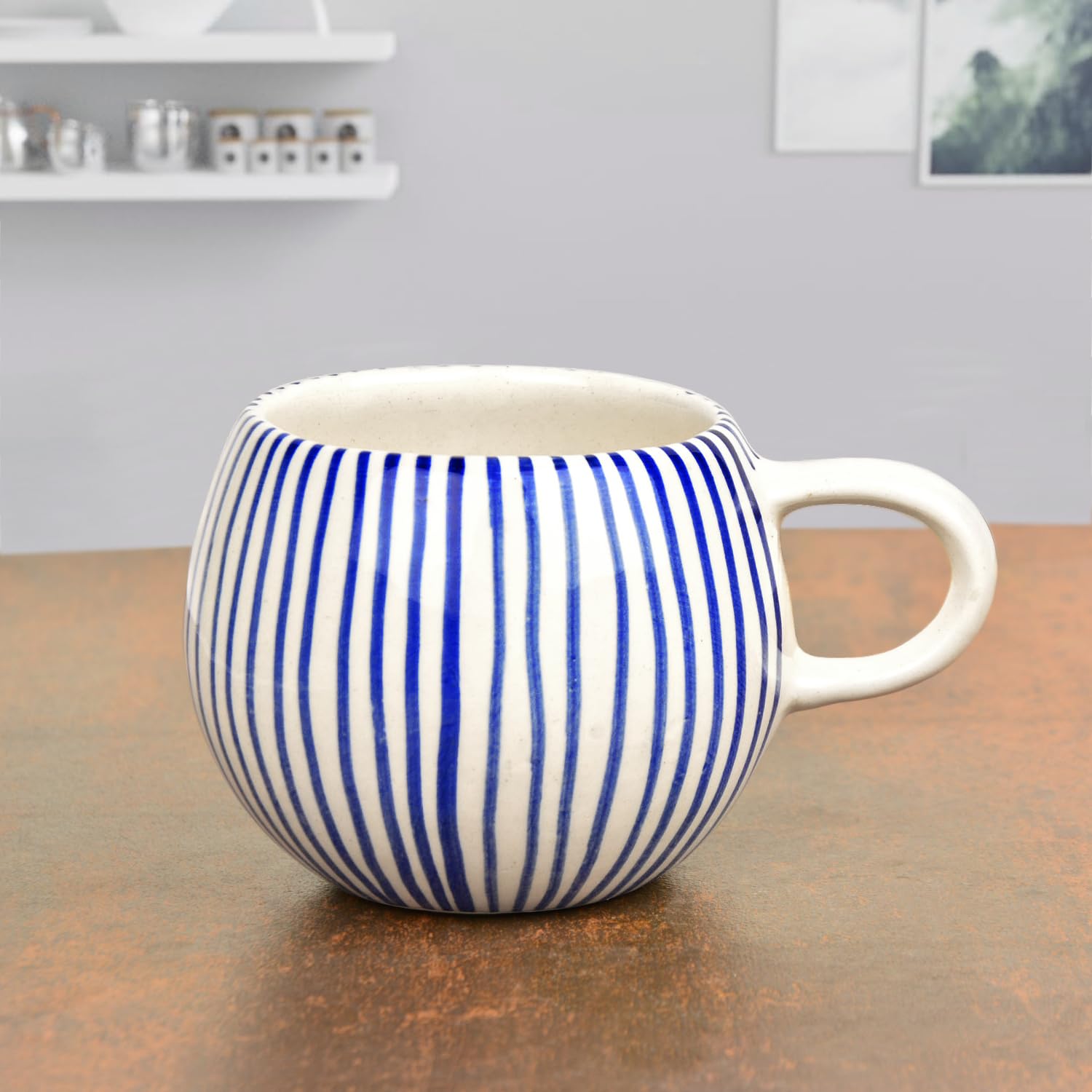 Handmade Ceramic Jumbo Coffee Mug 400ml - Blue, 1 Piece | Single Piece Milk Mug | Large Big Size Microwave Safe Tea Cup