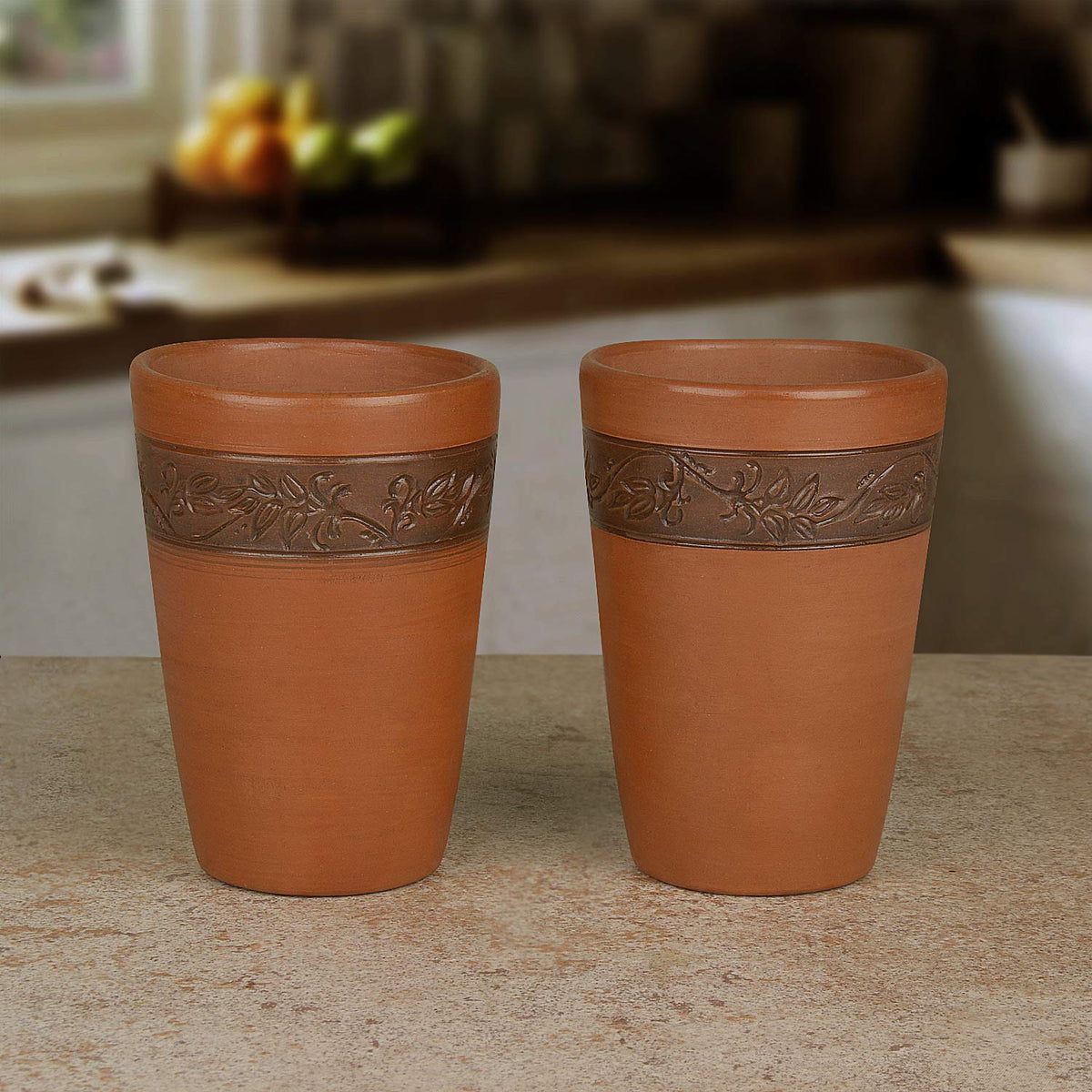 Handmade Earthen Clay Lassi Milk Beer Glasses Set Of 2 - Brown, 450ml Each | Earthenware Glasses