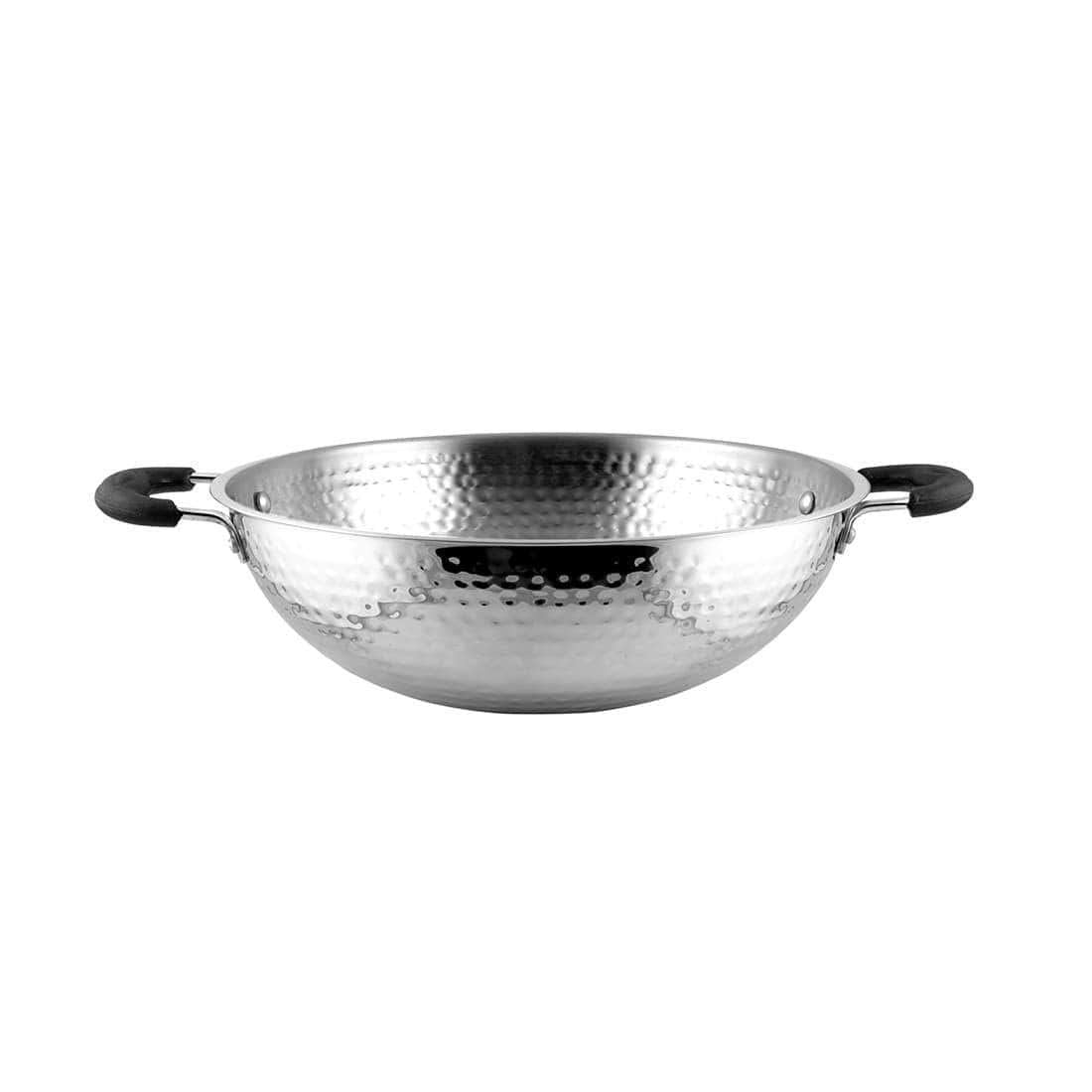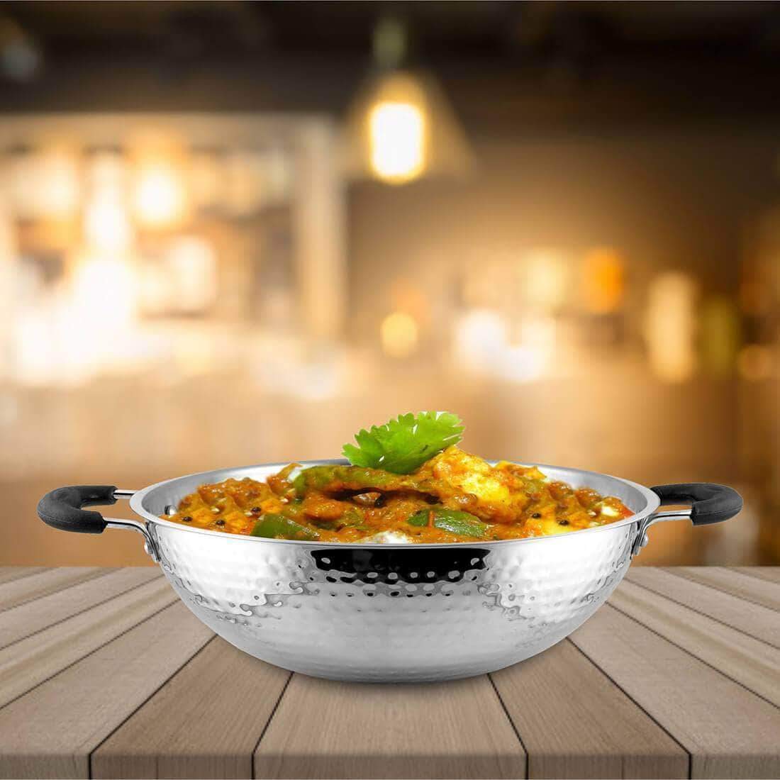 High Grade Stainless Steel Hammered Kadhai 28 Cm - Silver, 4 Liters | Dishwasher Safe