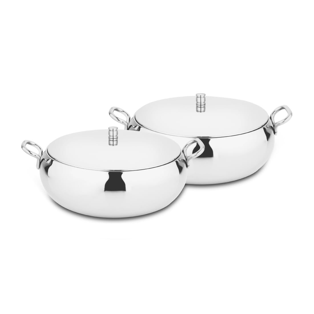 High Grade Stainless Steel Marina Serving Bowl Set With Lid - 2 Pieces, 17 Cm Each, 1000ml Each