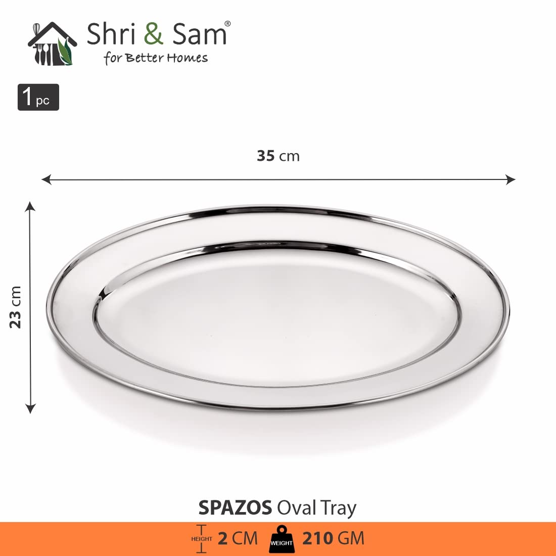 High Grade Stainless Steel Spazos Oval Tray, Silver | Big Enough To Serve 7-8 Cups At A Time, 35 Cm