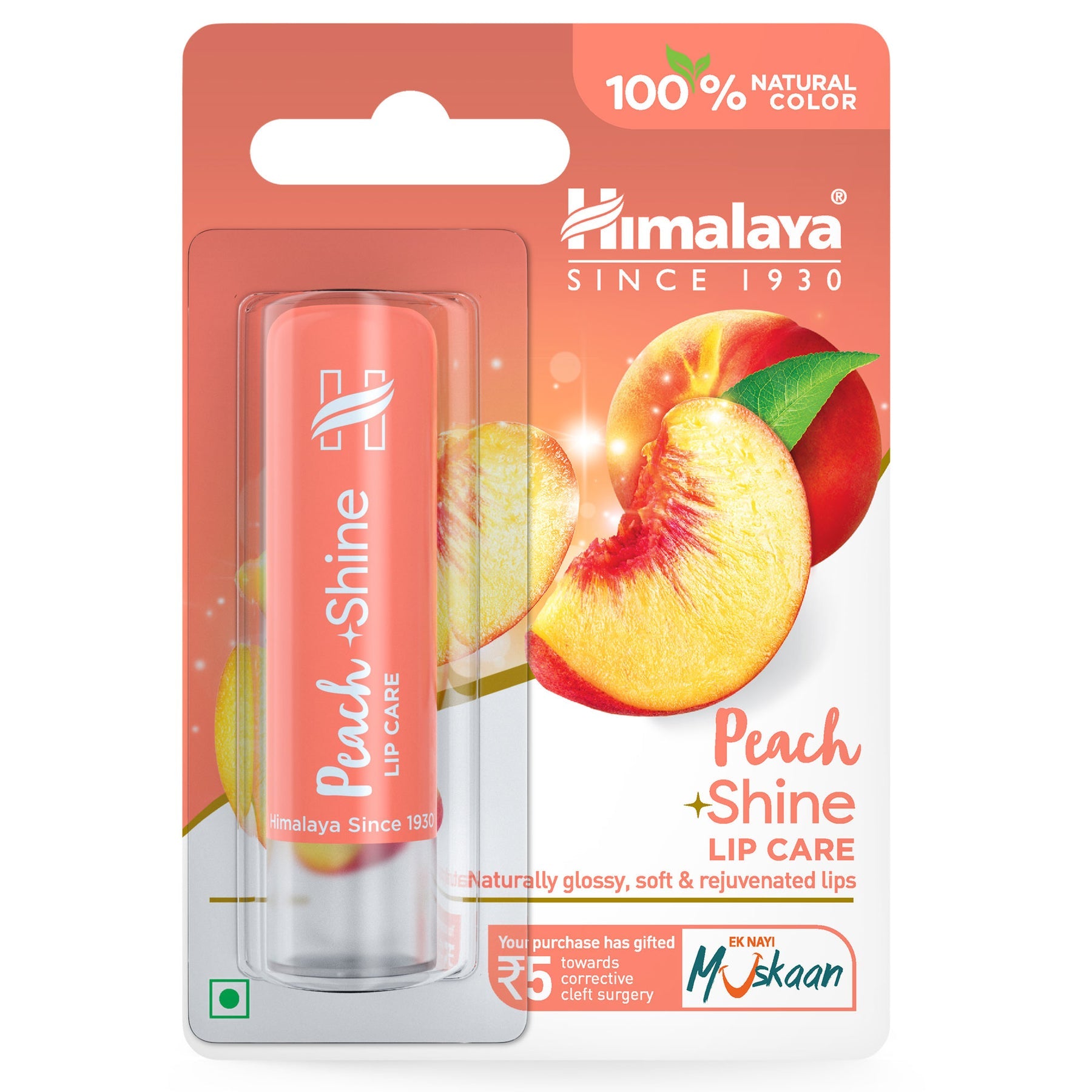 Himalaya Peach Shine Lip Care, Naturally Glossy, Soft & Rejuvenated Lips | 4.5gm
