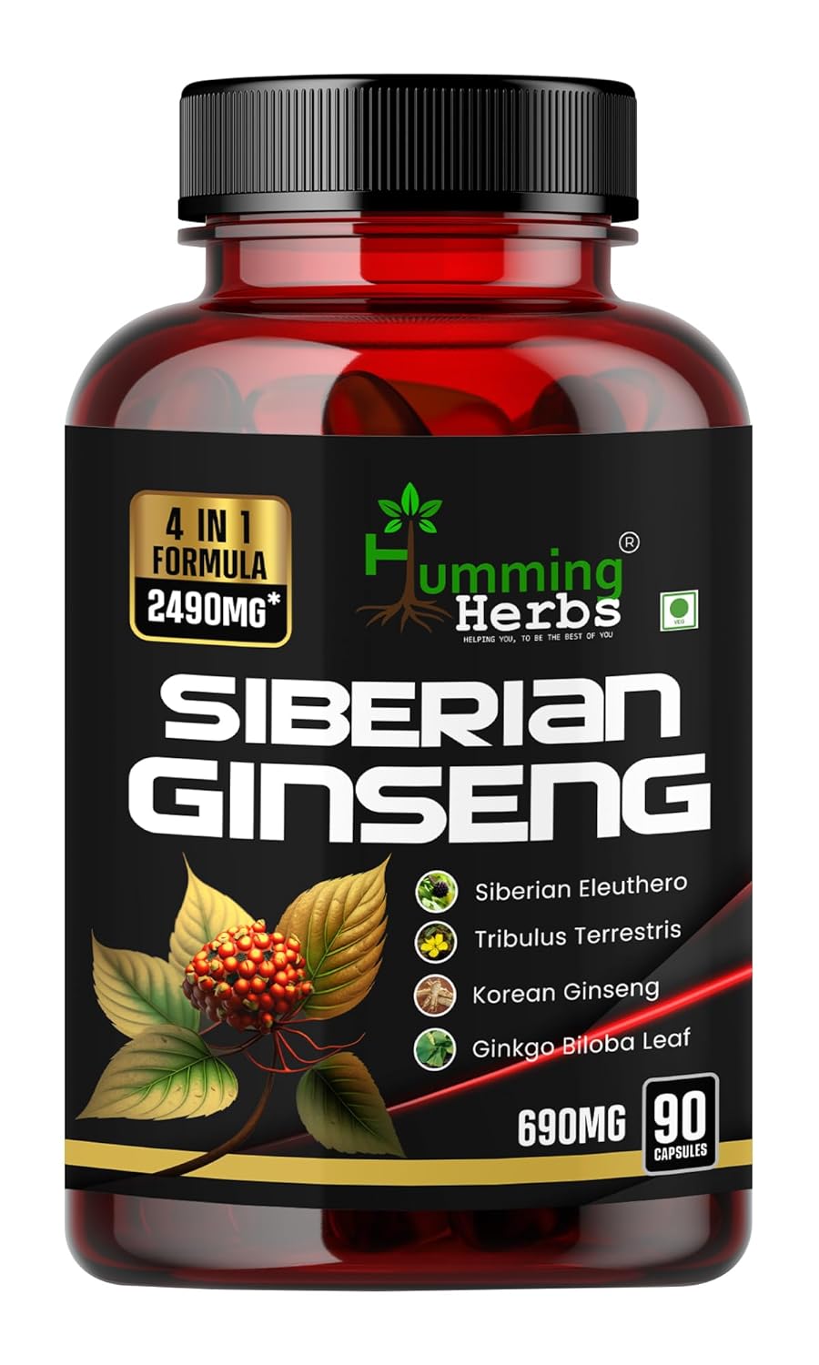 Humming Herb Siberian Ginseng Energy Boosting, Immune Supporting & Performance Enhancing, Includes Ginkgo Biloba Leaf, Tribulus Terrestris & Korean Eleuthero Root 2490mg | 90 Capsules 150gm 0.3lbs