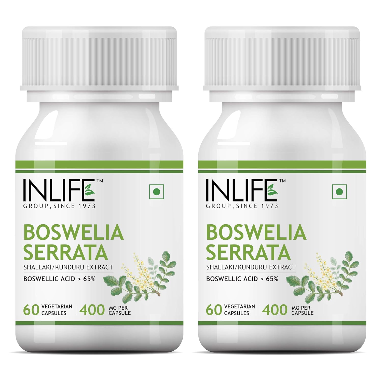Inlife Boswellia Serrata Extract Boswellic Acids > 65% Joint Supplement, 400mg | 60 Vegetarian Capsules 100gm 0.2lbs Each Pack Of 2