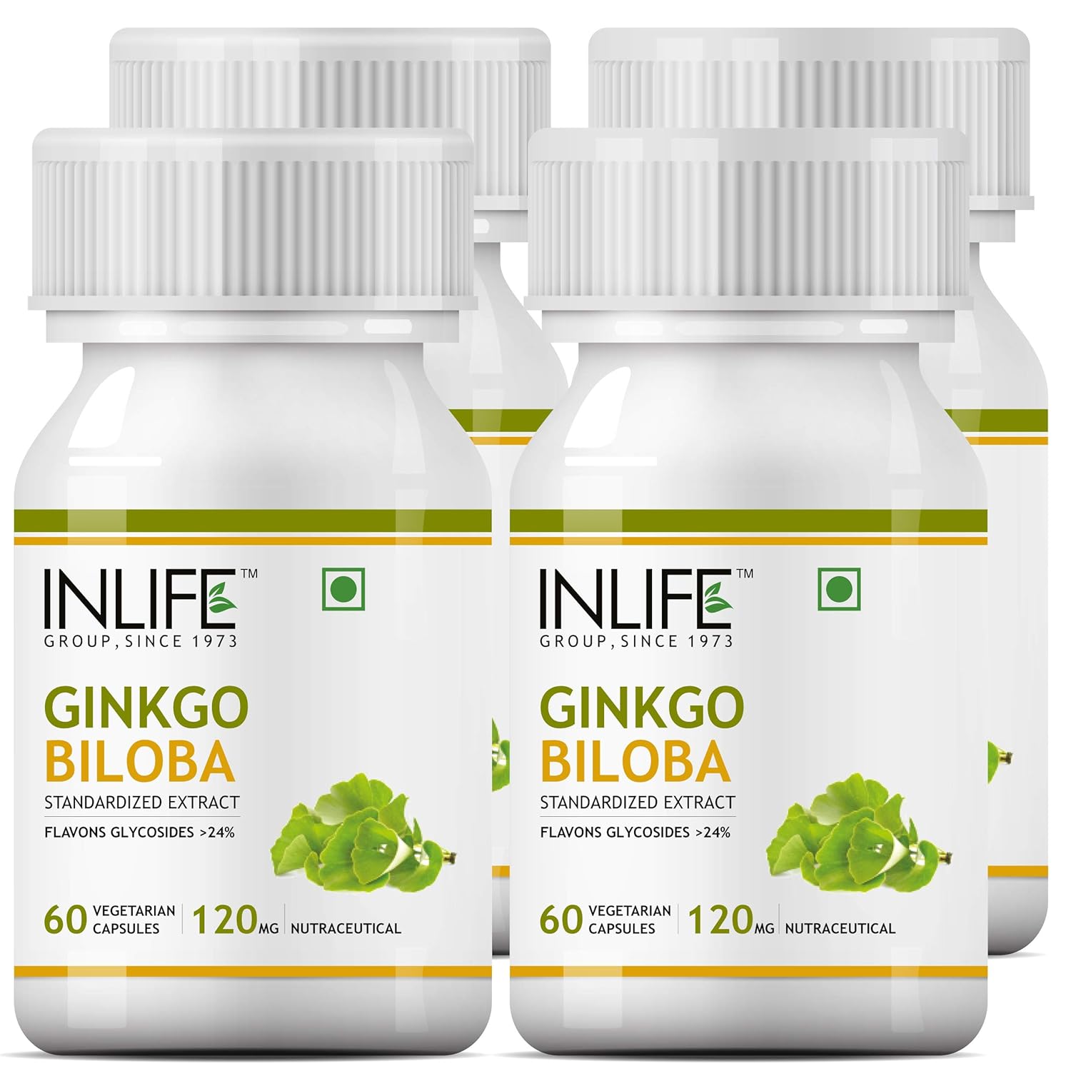 Inlife Ginkgo Biloba Extract Capsules 120mg, Herbal Supplement, Memory Support | 60 Veg Capsules 50gm 0.1lbs Each Pack Of 4