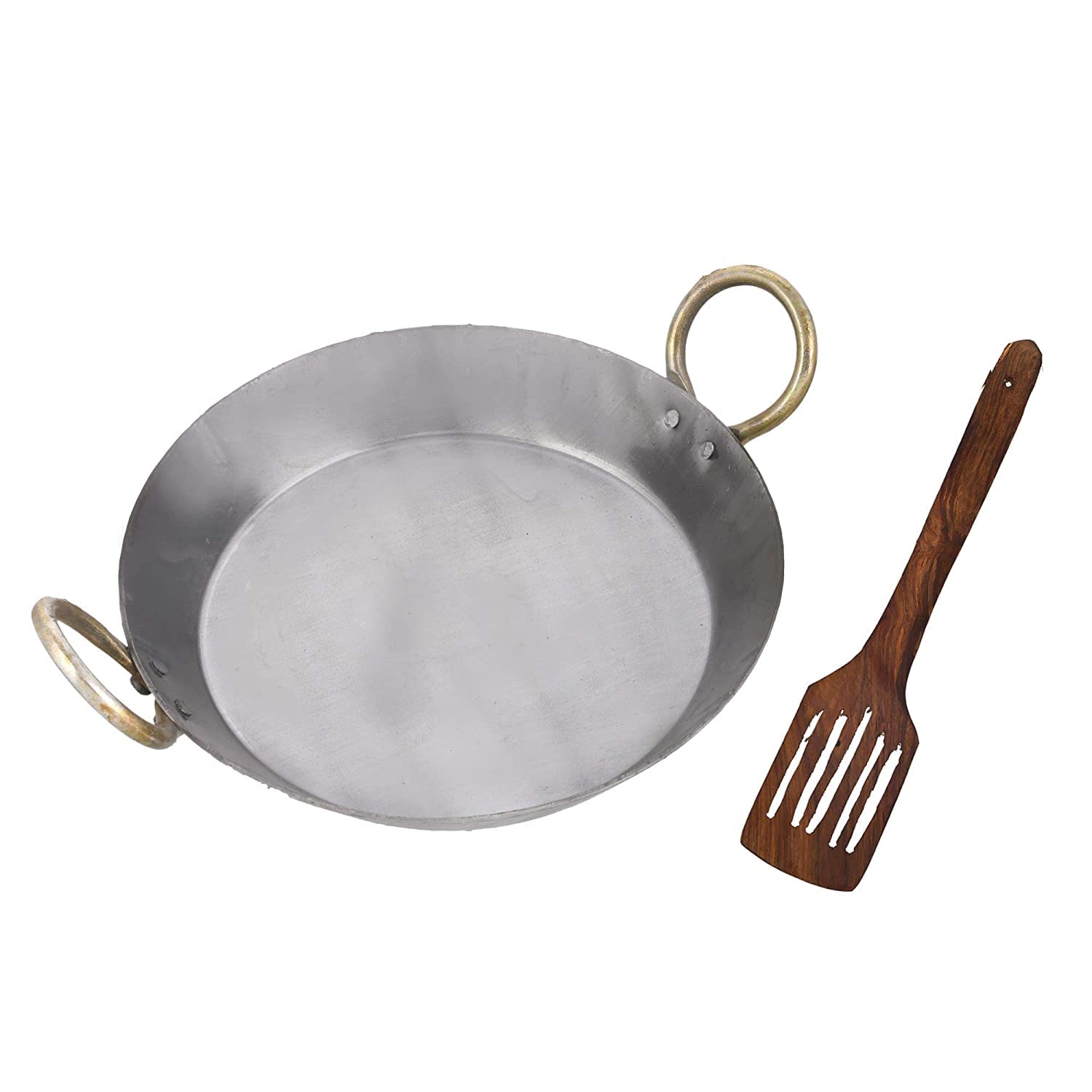 Iron Flat Kadai + Free 1 Wooden Spatula | Tai Or Fry Pan Or Tai For Making Jalebis, Dal Tadka, Tavi For Kitchen & Cooking Use, 11 Inches