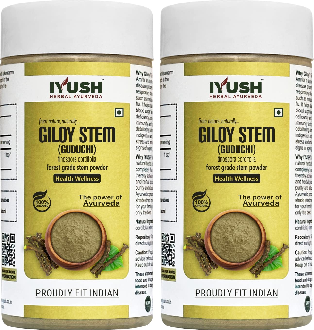 Iyush Herbal Ayurveda Giloy Stem Powder, Forest Variety Herbs, Organic, 100% Pure & Natural, No Preservatives Added | 100gm 0.2lbs Each Pack Of 2
