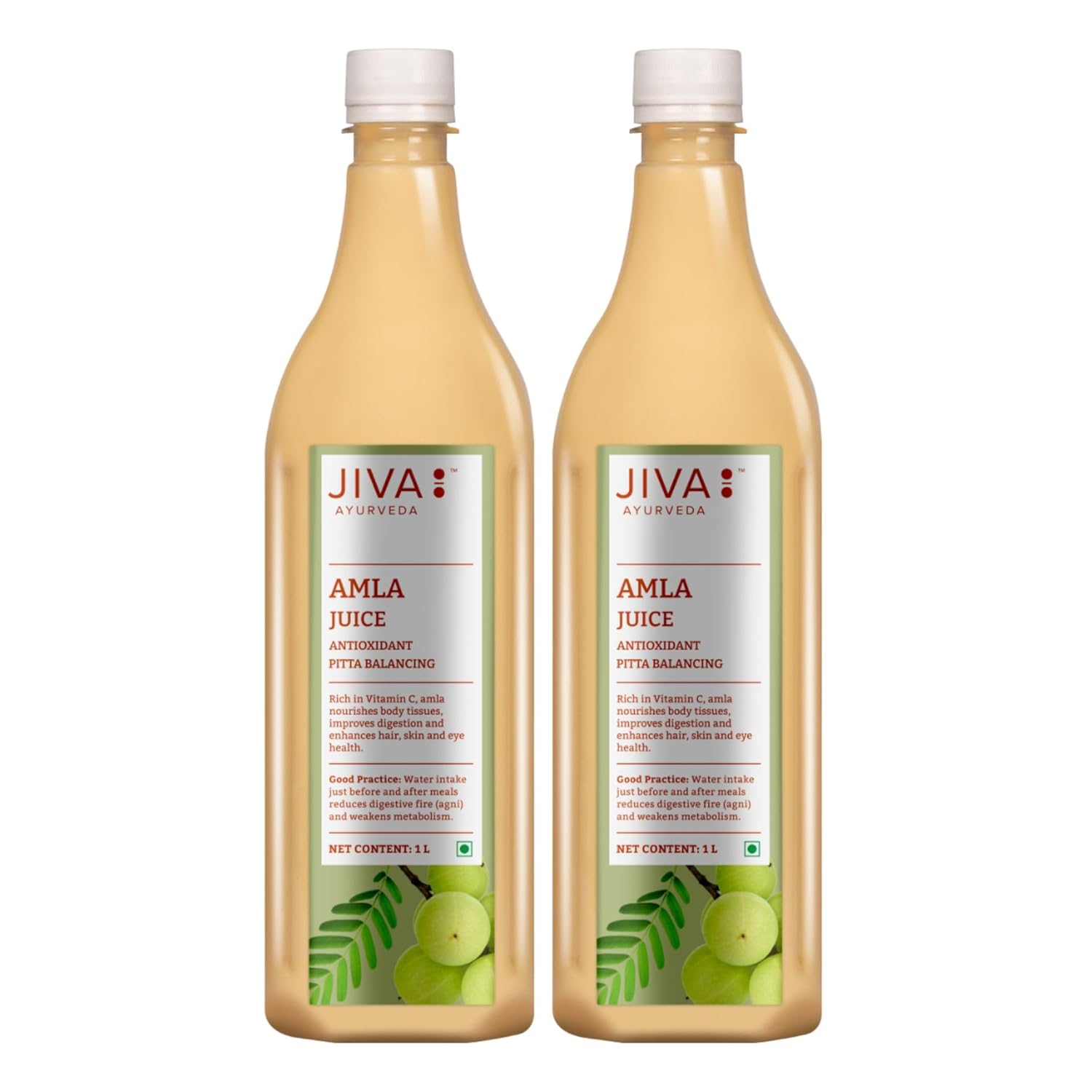 Jiva Amla Juice 100% Pure & Natural Helpful In Digestion, Enhance Skin, Hair & Eye | 1 Litre 2.2lbs Each Pack Of 2