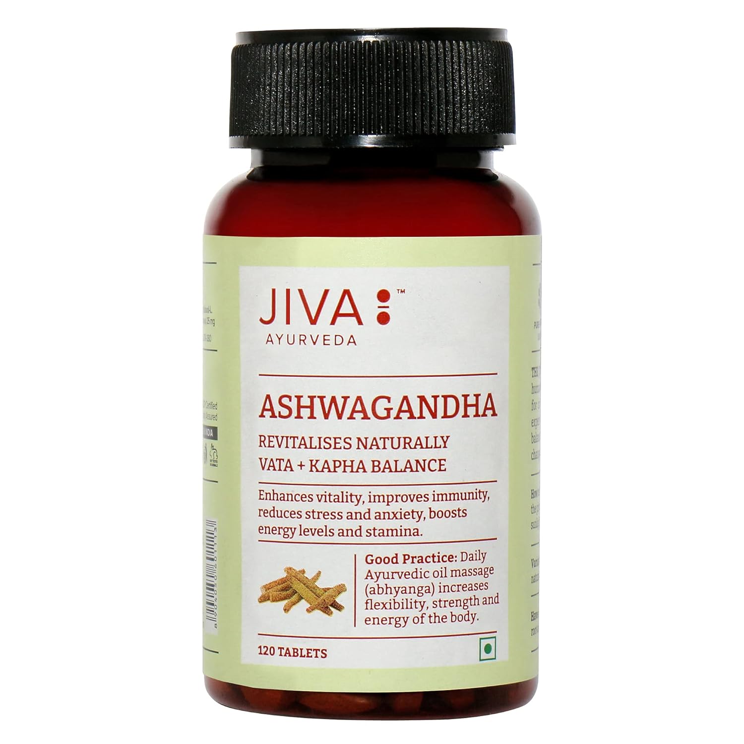 Jiva Ashwagandha Tablet 100% Ayurvedic Formulation Boosts Immunity & Energy Level, Strengthens Nervous System, Reduces Stress & Anxiety | 120 Tablets 200gm 0.4lbs